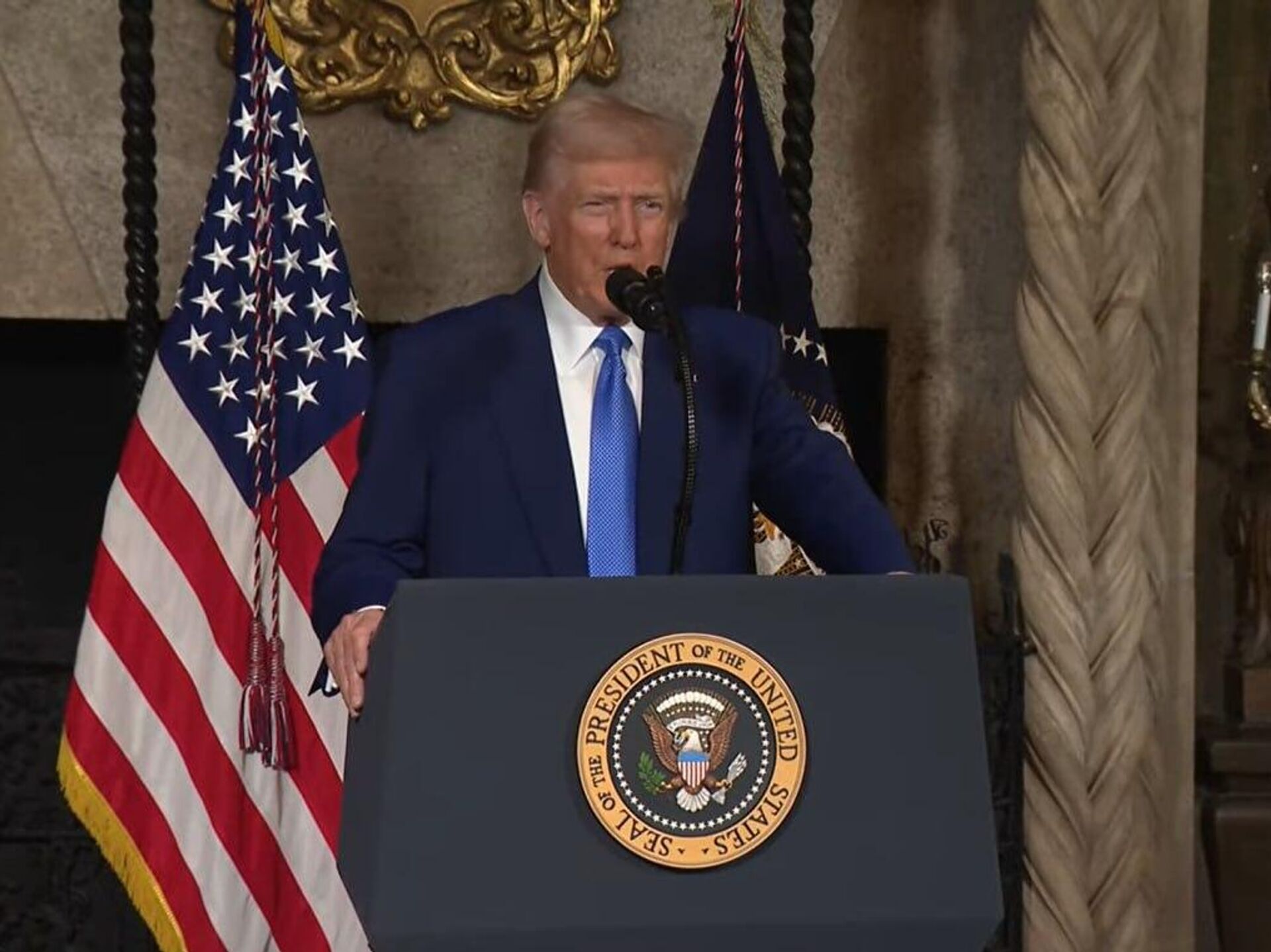 Desde su residencia en Mar-a-Lago, Trump reconoció que Rusia tiene la voluntad para acabar con el conflicto ucraniano, que está a punto de cumplir tres años el próximo 24 de febrero. Además, adelantó que su reunión presencial con su homólogo ruso Vladímir Putin sucederá "probablemente" antes de que termine febrero. En algún momento de la conferencia de prensa, el presidente estadounidense fue cuestionado acerca de que las autoridades ucranianas no formen parte de las conversaciones en Arabia Saudita. Ante ello, criticó que el Gobierno de Zelenski no haya tenido antes la voluntad de sentarse a negociar con Putin. En cambio, sobre Moscú dijo que tener "mucha mayor confianza" tras el encuentro entre el canciller ruso Serguéi Lavrov y el secretario de Estado, Marco Rubio. "Rusia quiere hacer algo, ellos quieren detener esta barbarie", comentó. ¿Es hora de elecciones en Ucrania?Durante la rueda de prensa, Donald Trump recordó que no ha habido elecciones en Ucrania debido a la ley marcial que impera en el país desde que comenzó el conflicto en febrero de 2022, hace ya casi tres años. Además, remarcó el bajo nivel de respaldo popular que tiene el líder ucraniano Volodímir Zelenski. También aseguró que "la gente está cansada" de vivir en medio de un conflicto que, insistió, pudo haber terminado hace años si hubiese existido voluntad política. Por constitución, Ucrania tenía que haber realizado sus elecciones presidenciales el pasado 31 de marzo, pero desde febrero de 2022 rige la ley marcial en el país, por lo cual Zelenski sigue en el poder.Trump reivindicó que la necesidad de realizar elecciones en Ucrania es una demanda suya, y negó que dicho reclamo sea una condición proveniente de Rusia. "Eso no es algo de Rusia. Es algo que viene de mí y de muchos otros países también", recalcó el mandatario.Desde hace meses, el presidente de Rusia, Vladímir Putin, cuestiona la legitimidad del liderazgo de Zelenski por su renuencia a convocar a elecciones.¿Y el dinero... a dónde va?El presidente de Estados Unidos también dijo a los periodistas que no ha visto ninguna contabilidad financiera sobre la ayuda de los "350.000 millones de dólares o algo menos que eso" proporcionados por Washington a Ucrania.El Kremlin lleva tiempo advirtiendo que la Organización del Tratado del Atlántico Norte (OTAN) "está incitando a Ucrania por todos los medios a que siga adelante con esta guerra sin sentido", a través de adiestramiento militar, entregas de armamento e incluso presencia castrense en el campo de batalla. Trump ha dicho que está en contra de que su país sea el mayor aportador de armas y dinero a Ucrania, en comparación con Europa. "Creo que Zelenski dijo la semana pasada que no sabe dónde está la mitad del dinero que le dimos (...) Es bastante. Y tenemos que igualarnos con Europa, porque Europa ha dado un porcentaje mucho menor. Creo que Europa ha dado unos 100.000 millones de dólares. Y nosotros hemos aportado, digamos, unos 300.000 millones más, y [Ucrania] es más importante para ellos que para nosotros", dijo Trump. Las fuerzas de paz en Ucrania, que sean europeasEl presidente Trump declaró que no ve la necesidad de reducir la presencia de tropas estadounidenses en Europa para lograr la paz en Ucrania. "Nadie me ha pedido que lo haga", dijo. De igual modo, aseguró que no se opondría al eventual despliegue de una fuerza de paz de la Unión Europea (UE), en Ucrania, aunque descartó el envío de tropas de EEUU. "Si quieren hacerlo, es genial, estoy totalmente a favor", comentó.Trump externó su idea de que Rusia tiene capacidad para destruir "muy rápidamente" el 100% de las ciudades ucranianas, incluida Kiev, pero reconoció que el país euroasiático no está dispuesto a hacerlo.