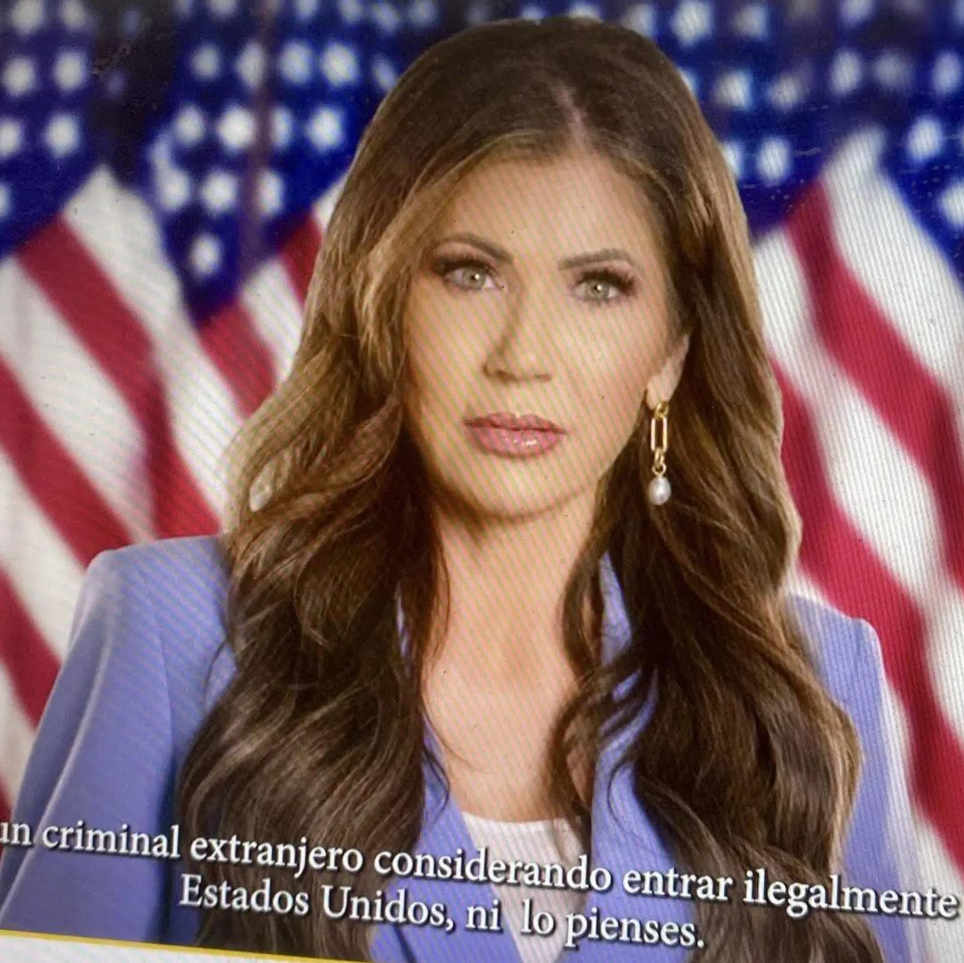 En otros videos, la exgobernadora de Dakota del Sur advierte que "si estás considerando entrar a América ilegalmente, ni lo pienses. Quiero ser clara, si entra a nuestro país y rompe nuestras leyes, lo perseguiremos: los criminales no son bienvenidos en Estados Unidos".