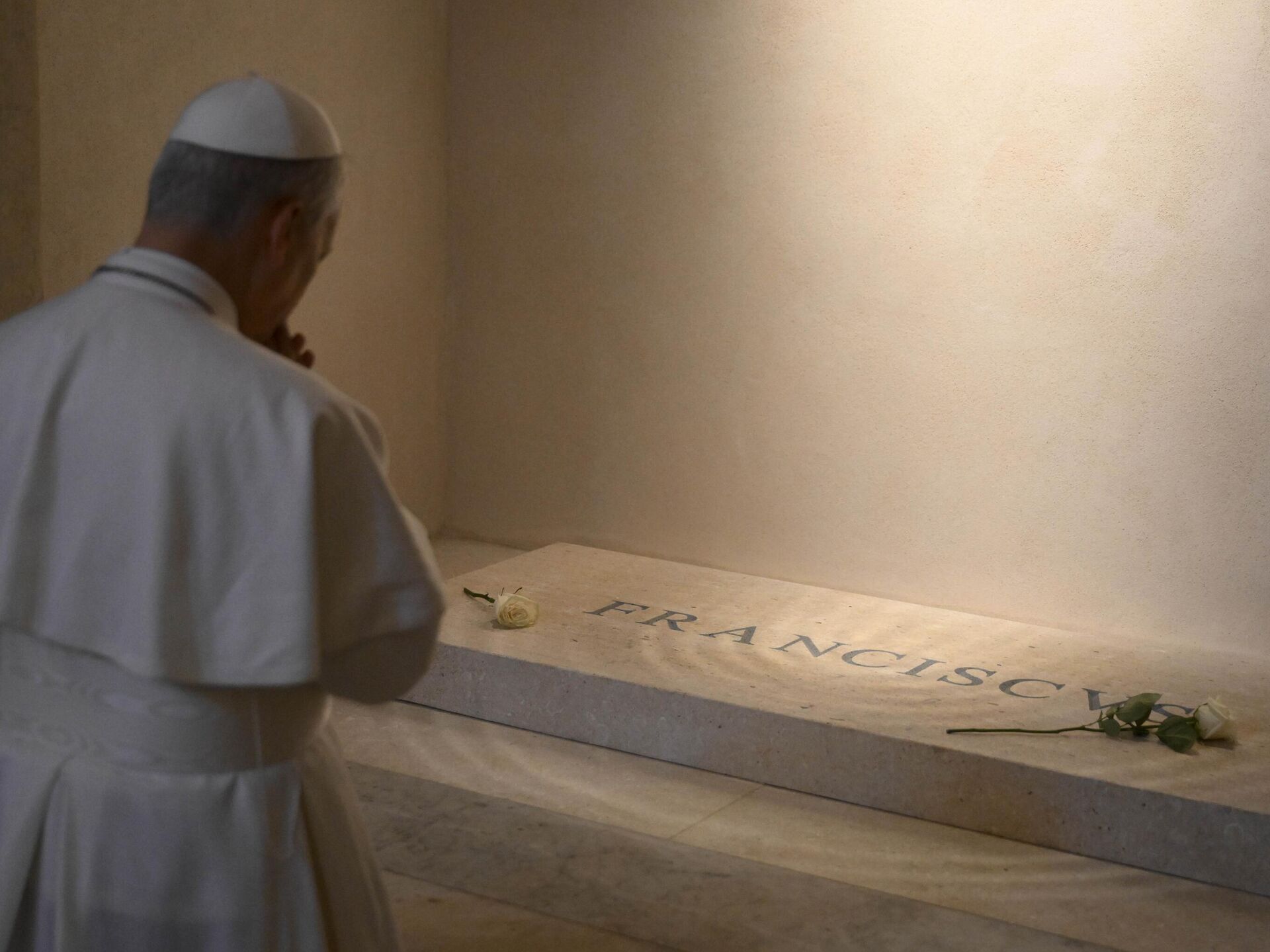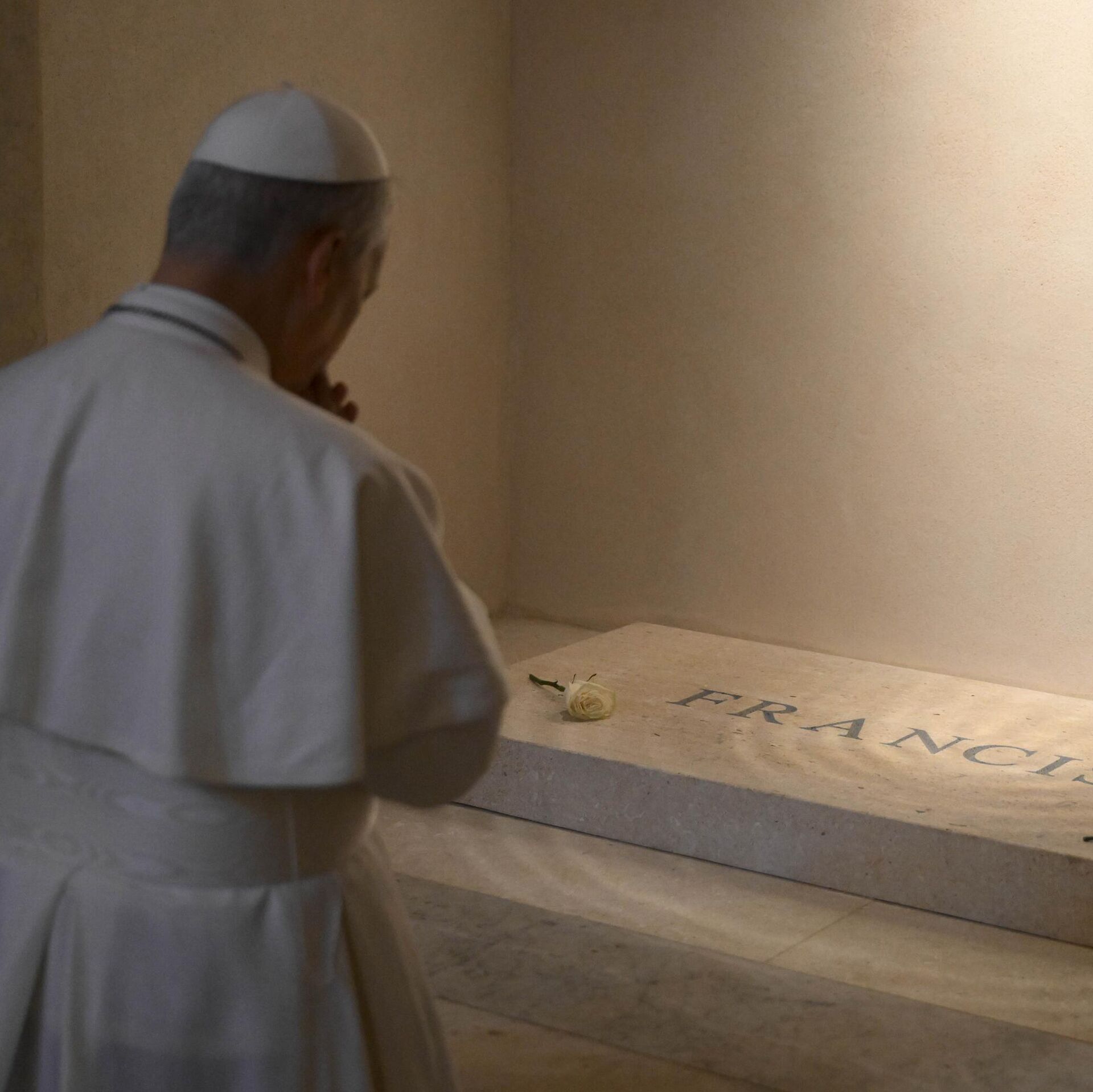 De acuerdo con Vatican News, León XIV acudió al sitio elegido por Francisco para ser enterrado, donde colocó una rosa blanca.
