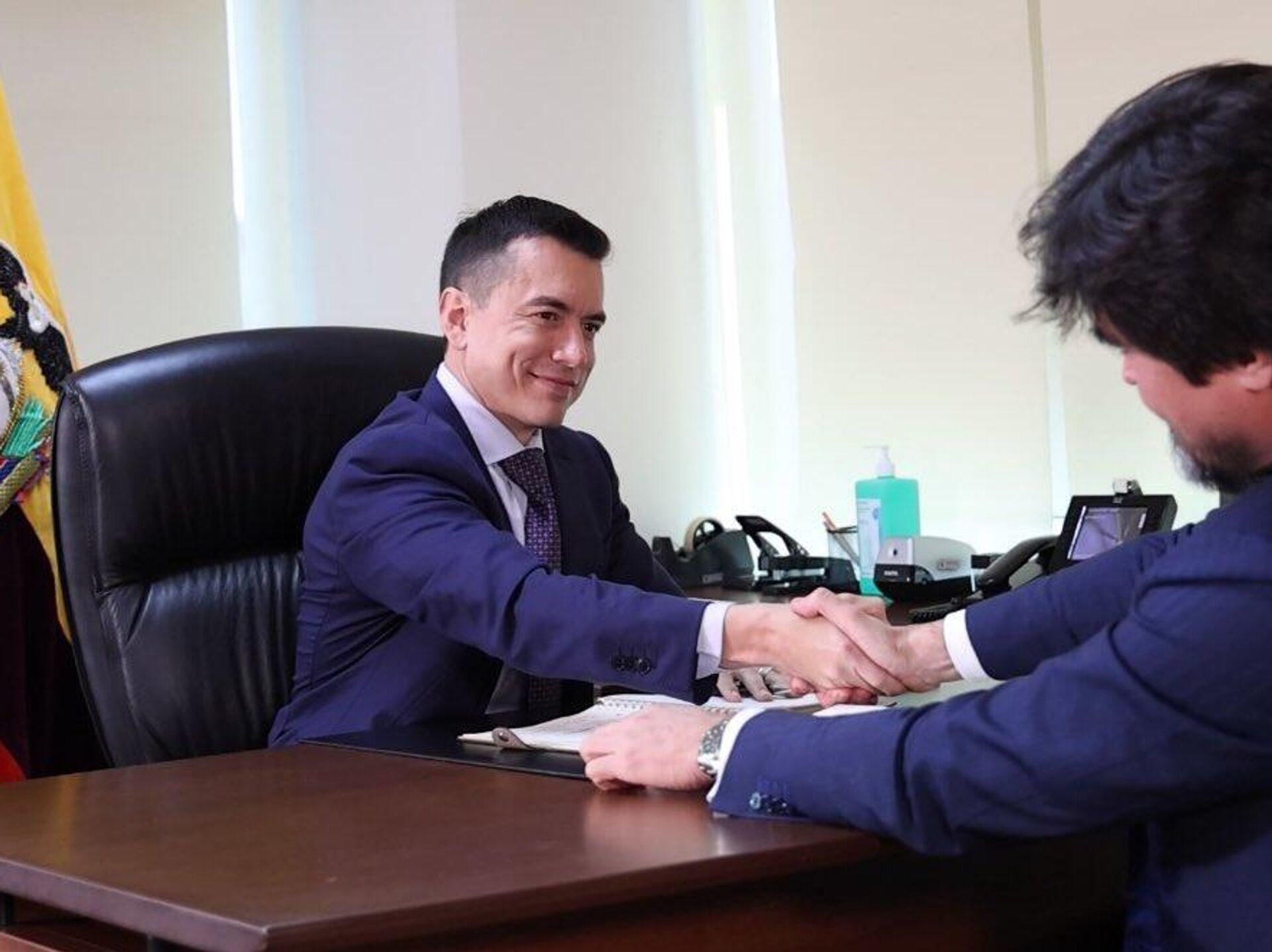 Una semana antes del comienzo de la nueva Legislatura, el actual ministro de Gobierno ecuatoriano, José de la Gasca, publicó en sus redes sociales una fotografía junto a los nueve asambleístas electos por Pachakutik, el partido político que engloba al movimiento indígena ecuatoriano."Hoy los nueve asambleístas electos de Pachakutik se suman a este gran acuerdo, reafirmando con el Gobierno nacional que cuando se antepone el amor por el país, es posible sumar esfuerzos y trabajar juntos por el progreso de todos los ecuatorianos", escribió el jerarca, asegurando que el acuerdo "se reflejará en la nueva Asamblea Nacional".Si bien Pachakutik debió emitir un comunicado con el fin de aclarar que "hasta el momento no se ha llegado a ningún acuerdo con el Ejecutivo ni con ningún otro sector", la gestión de De la Gasca dejó en evidencia la intención del Gobierno de Noboa de asegurarse votos en el nuevo Congreso, donde cuenta con 66 asambleístas electos.De alcanzar la mayoría absoluta de 77 votos, el oficialismo de Noboa se aseguraría poder blindar a los ministros de posibles recursos de censura promovidos por el correísmo, que no pasa de los 67 curules."Ninguna fotografía es casual"El experto consideró que Pachakutik se encuentra en el centro de este dilema, ya que, si bien es "en teoría un partido de izquierdas", ya en el pasado ha tenido "un manejo parlamentario que lo dejan de alguna forma por fuera de esa visión de izquierdas" y lo acerca a eventual acuerdo que le asegure la mayoría al Gobierno ecuatoriano.Algo similar planteó, consultado por Sputnik, el también analista político Henry Allan, para quien la fotografía de los asambleístas junto a De la Gasca es elocuente sobre un acuerdo porque, a pesar de que hayan intentado restarle trascendencia a la reunión, "en política ninguna fotografía es casual".Para Allan, el interés del Gobierno en captar a los asambleístas del partido indígena radica en que le será "prácticamente imposible negociar" con Revolución Ciudadana, que nuclea al correísmo y que, a diferencia de muchas de las demás expresiones que integran el escenario político ecuatoriano, se trata de "un verdadero partido político, es decir, un bloque homogéneo e ideológicamente formado".En sintonía con lo señalado por Moreno, Allan recordó que Pachakutik comenzó a acercarse a expresiones de derecha desde el año 2010, cuando las diferencias con el entonces Gobierno de Rafael Correa (2007-2017) lo acercaron a posturas coincidentes con las administraciones siguientes de Lenín Moreno (2017-2021) y Guillermo Lasso (2021-2023).El analista aclaró que, aunque la cúpula de Pachakutik hubiera esbozado un acuerdo con la candidatura de Luisa González antes de las elecciones, el Gobierno de Noboa apela ahora a los asambleístas electos, muchos de los cuales provienen de "segundas líneas" del partido y con mucho más arraigo provincial y local. Por eso, aventuró que el oficialismo ofreció a los dirigentes algún tipo de "acuerdo prebendario", que premia el alineamiento posiblemente con "pequeñas porciones de poder en las provincias y manejo de direcciones estatales".La madre del presidente en la Asamblea NacionalPero la consolidación de alianzas no es la única estrategia del oficialismo para garantizarse el control de la Asamblea Nacional: Noboa también podría tener a su madre, Annabella Azín, como presidenta del Legislativo.Azín no solo fue una de las caras más visibles de la campaña del partido de Noboa, la Acción Democrática Nacional (ADN), sino que resultó la candidata a asambleísta más votada del país. Por eso, desde que se conocieron los resultados se especula con que asuma la presidencia de la nueva Asamblea Nacional.Para Allan, la posibilidad de que la titularidad de la Asamblea Nacional recaiga en la madre del presidente es un síntoma de que, en realidad, "lo que gobierna en Ecuador es literalmente una oligarquía". Al respecto, describió al oficialismo ecuatoriano actual como "un puñado de familias que se creen aristocráticas, de origen blanco en un país de mucha población indígena" y que buscan replicar en el país "lógicas aristocráticas del siglo XIX en América Latina".Por su parte, Oswaldo Moreno consideró que Azín, —que ya fue diputada en 2007 y constituyente entre 2007 y 2008— mantiene un perfil de "profesional surgida de las clases medias y muy respetada a nivel local e internacional", que ha sabido mantener una imagen "conciliadora y de consenso" aun en el crispado escenario político ecuatoriano.De todas maneras, el politólogo puso en duda que la madre de Noboa quiera permanecer realmente en el cargo. "No me la imagino en el día a día parlamentario, recibiendo reclamos de diferentes sectores y no sé si Noboa quiera exponer a su madre a eso", apuntó.Para Allan, en tanto, es posible que Azín solamente acceda al cargo hasta la toma de posesión de Noboa, el 24 de mayo, debido a su interés personal de "colocarle la banda presidencial a su hijo". El analista sostuvo, en ese sentido, que esa voluntad también expresa que para la familia Noboa "actúa como si el país fuera su empresa", ratificando ese aspecto oligárquico detrás del Gobierno ecuatoriano actual.