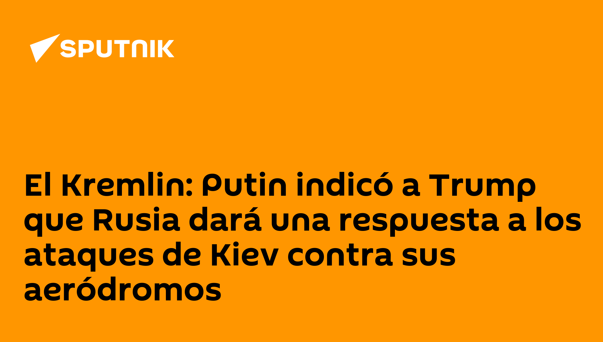 El Kremlin: Putin indicó a Trump que Rusia dará una respuesta a los ataques de Kiev contra sus aeródromosSíguenos en Sputnik Mundo / Sputnik Mundo Visual