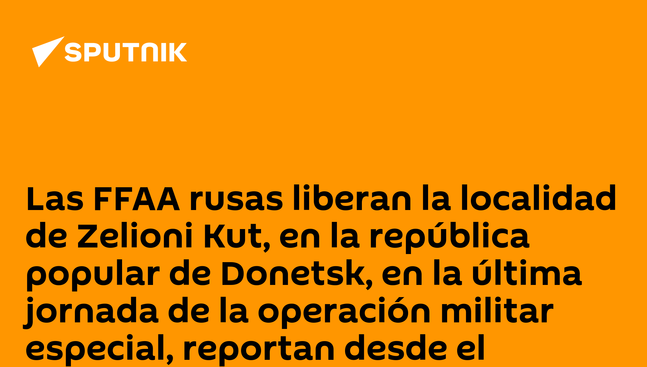 Las FFAA rusas liberan la localidad de Zelioni Kut, en la república popular de Donetsk, en la última jornada de la operación militar especial, reportan desde el Ministerio de Defensa de Rusia.Síguenos en Sputnik Mundo / Sputnik Mundo Visual
