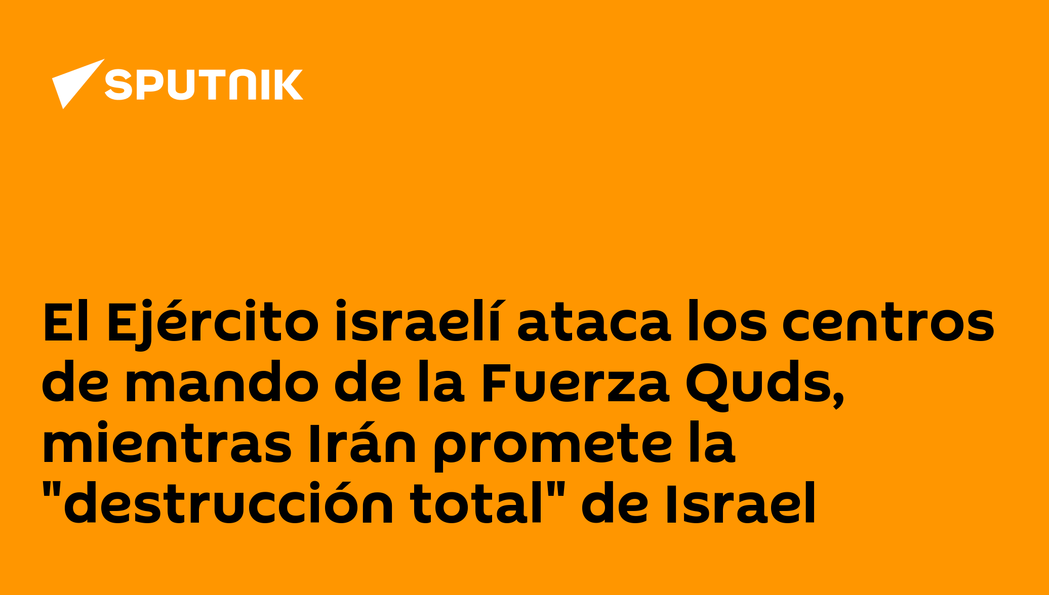 El Ejército israelí ataca los centros de mando de la Fuerza Quds, mientras Irán promete la "destrucción total" de Israel "La fuerza aérea israelí, siguiendo las instrucciones de la Dirección de Inteligencia de las Fuerzas de Defensa de Israel, golpeó centros de mando pertenecientes a la Fuerza Quds del Cuerpo de la Guardia Revolucionaria Islámica [CGRI] y al Ejército iraní", comentó el Ejército israelí en Telegram.Según los militares israelíes, en estos centros de mando los operativos de la Fuerza Quds estaban preparando ataques contra Israel. En total, se informa que fueron alcanzadas 10 instalaciones.Al mismo tiempo, las FFAA iraníes anunciaron que no tienen previsto dejar de bombardear a Israel hasta que este sea arrasado por completo."La 'Operación Promesa Verdadera 3' y las operaciones futuras serán más aplastantes, más duras, más precisas y más destructivas que los ataques anteriores", según la declaración del CGRI.Síguenos en Sputnik Mundo / Sputnik Mundo Visual