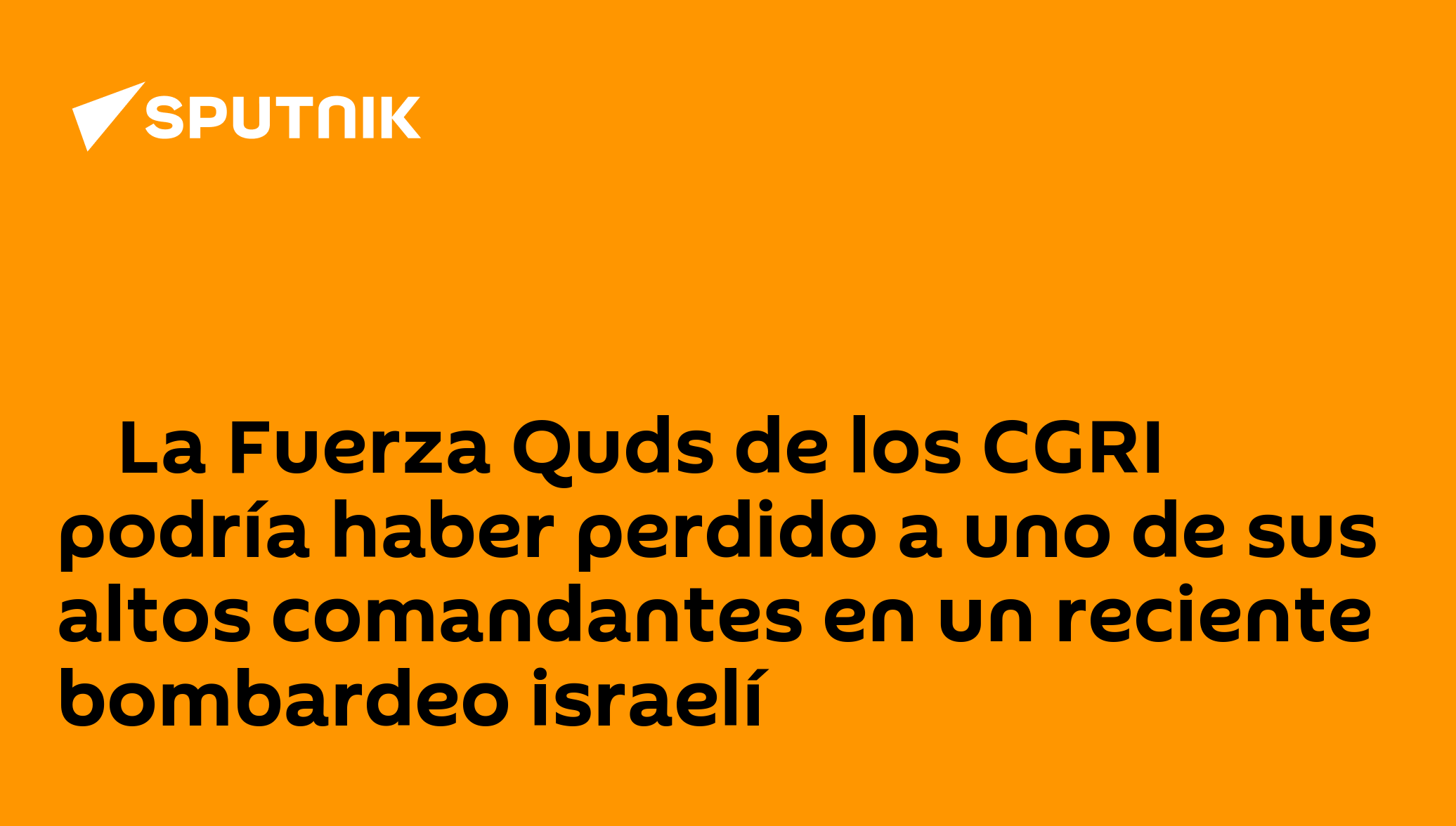 🪖La Fuerza Quds de los CGRI podría haber perdido a uno de sus altos comandantes en un reciente bombardeo israelíEl jefe de la División Palestina de la Fuerza Quds de los Cuerpos de la Guardia Revolucionaria Islámica (CGRI), Saeed Izadi, fue eliminado en un ataque israelí contra un apartamento en la ciudad iraní de Qom, informó el ministro de Defensa israelí, Israel Katz.Síguenos en Sputnik Mundo / Sputnik Mundo Visual