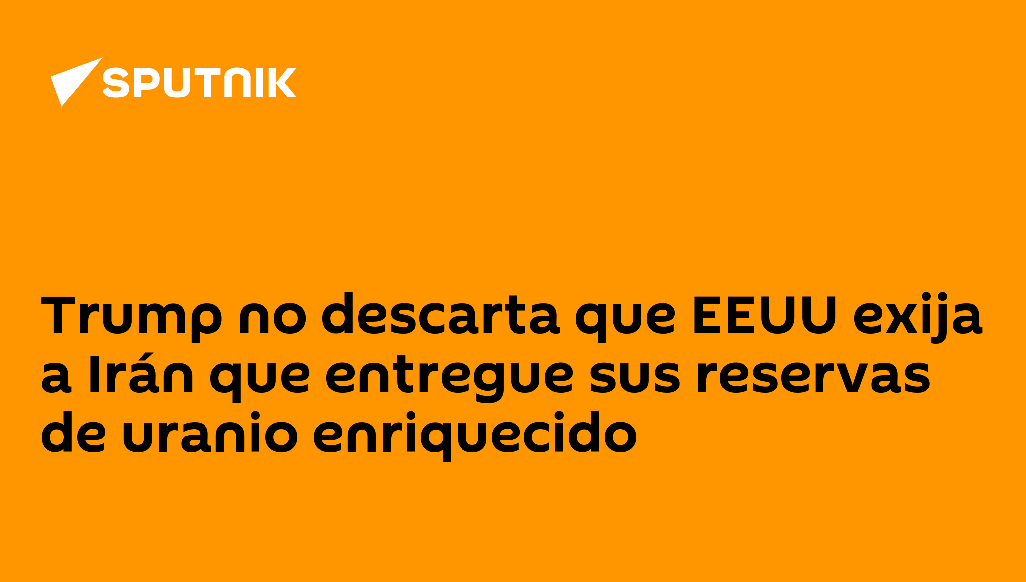Trump no descarta que EEUU exija a Irán que entregue sus reservas de uranio enriquecido"Bueno, es un poco pronto para eso, pero algo así. Sí, haremos algo así", respondió Trump a los reporteros, cuando le preguntaron si EEUU exige no solo que no haya producción de uranio dentro de Irán, sino también que Teherán entregue sus reservas existentes.Asimismo, destacó que no dudará en volver a atacar a Irán si se entera de que está enriqueciendo uranio.Síguenos en Sputnik Mundo / Sputnik Mundo Visual