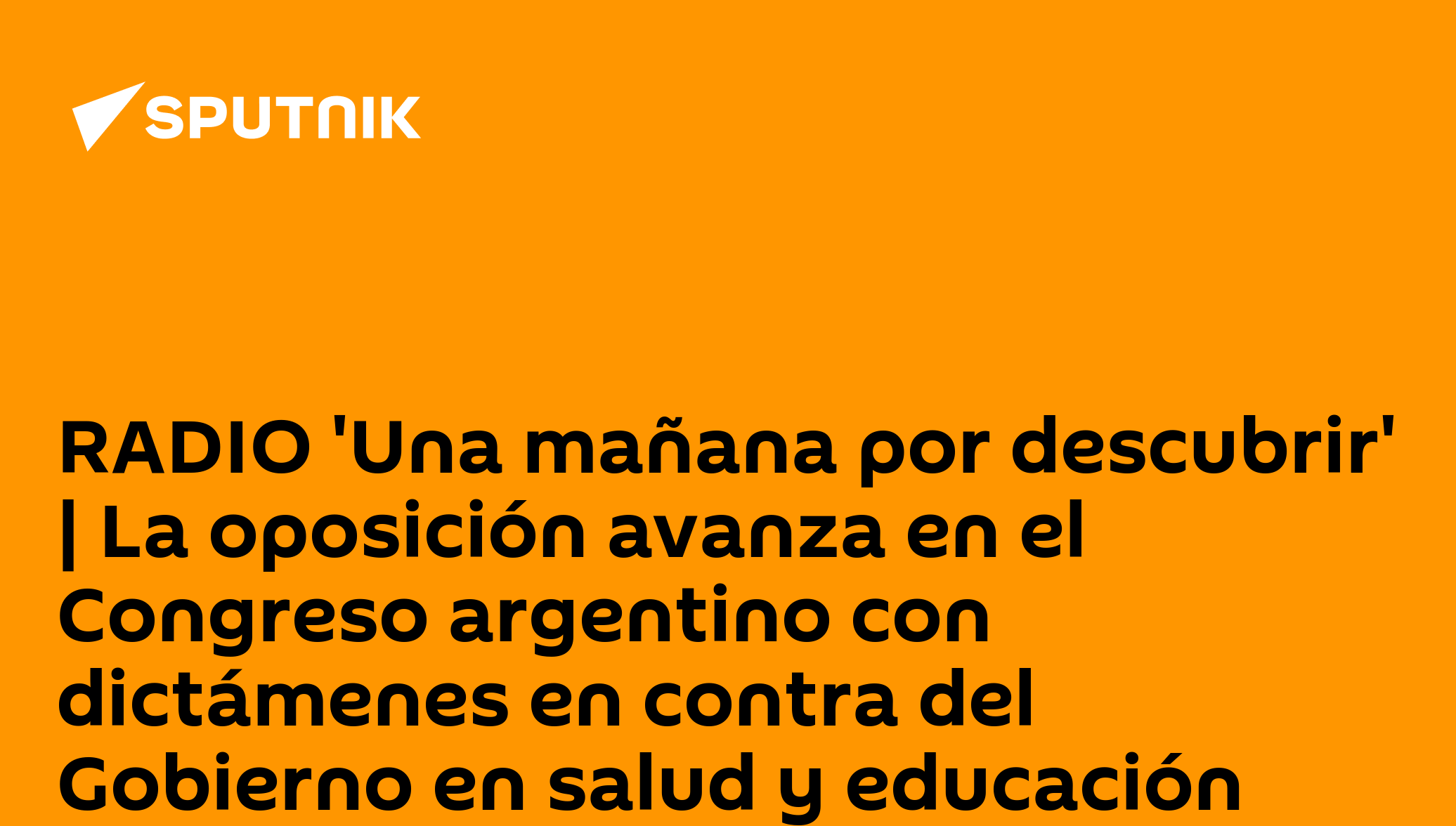 RADIO 'Una mañana por descubrir' | La oposición avanza en el Congreso argentino con dictámenes en contra del Gobierno en salud y educaciónLa oposición argentina avanza sobre el Gobierno de Javier Milei: logró dictamen a favor de los proyectos de financiamiento para las universidades públicas y la declaración de emergencia en pediatría en las comisiones de la Cámara de Diputados."Ahora dependemos de llegar a un consenso con el resto de los bloques para convocar a la sesión. La situación es de extrema urgencia porque comienza el segundo cuatrimestre universitario y hay una situación preocupante de la salud", expresó a Una mañana por descubrir, Daniel Arroyo, diputado de Unión por la Patria.Escucha el programa en Apple Podcast, Spotify o directamente en Telegram, así como en nuestra página web.Síguenos en Sputnik Mundo / Sputnik Mundo Visual