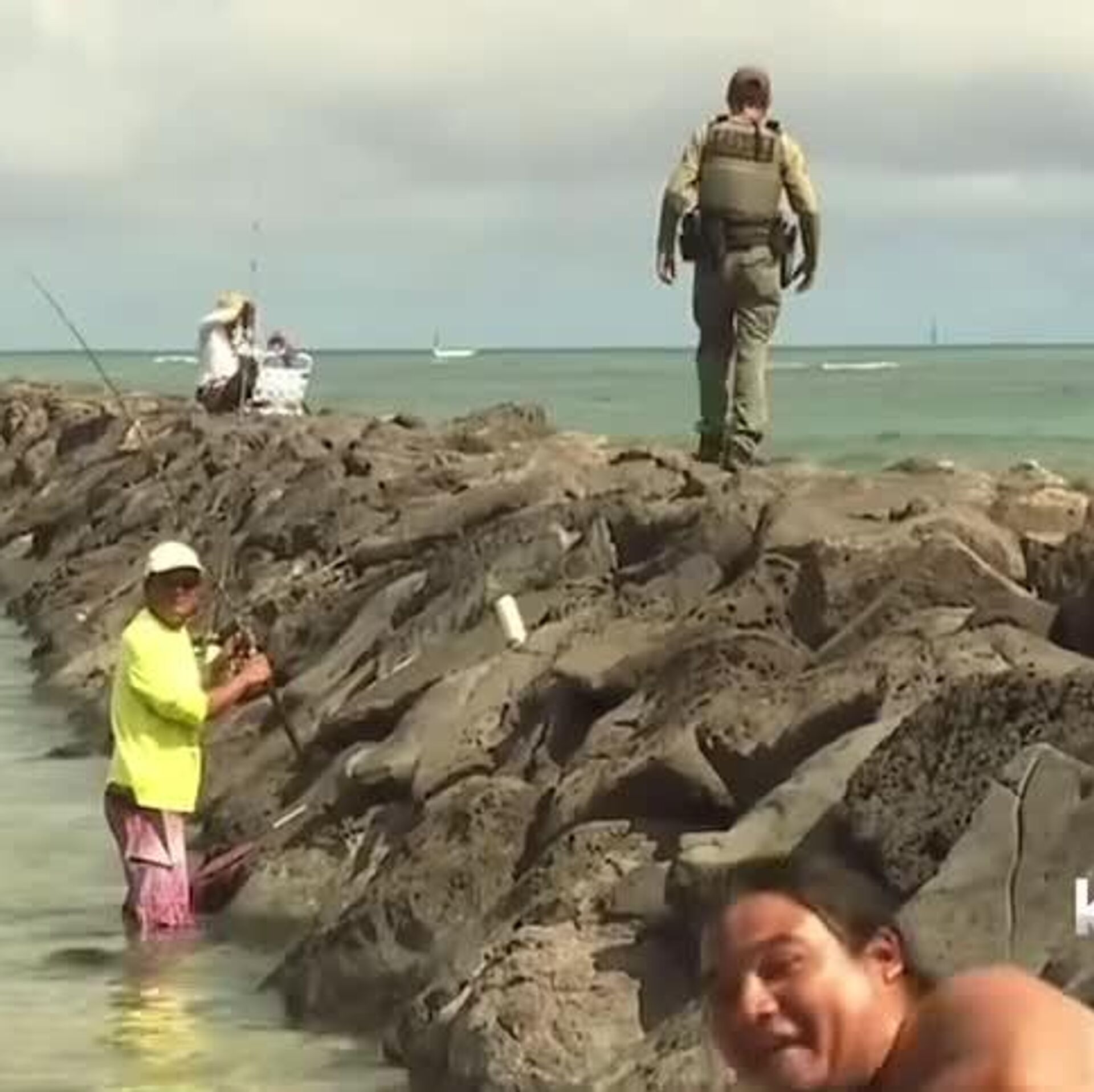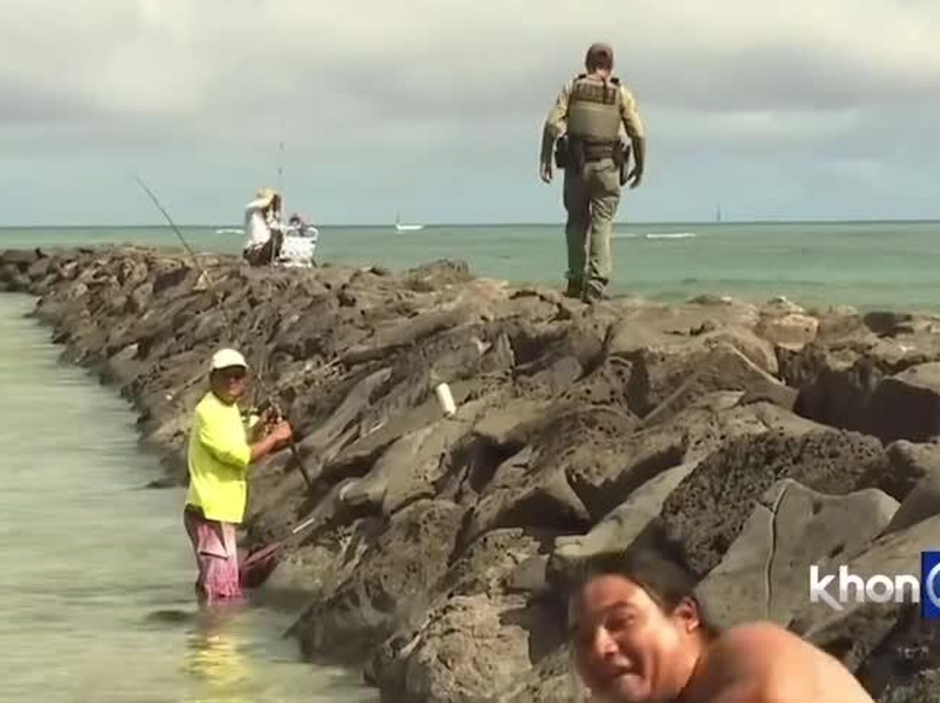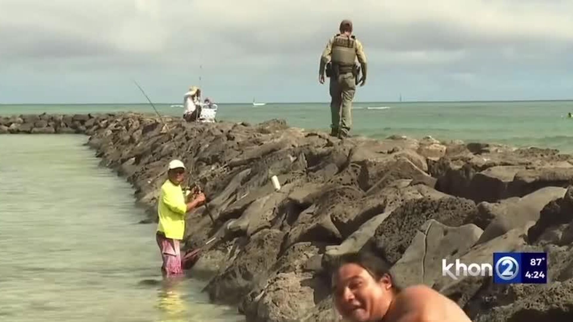Pescador se roba la pantalla durante alerta de tsunami en Hawái