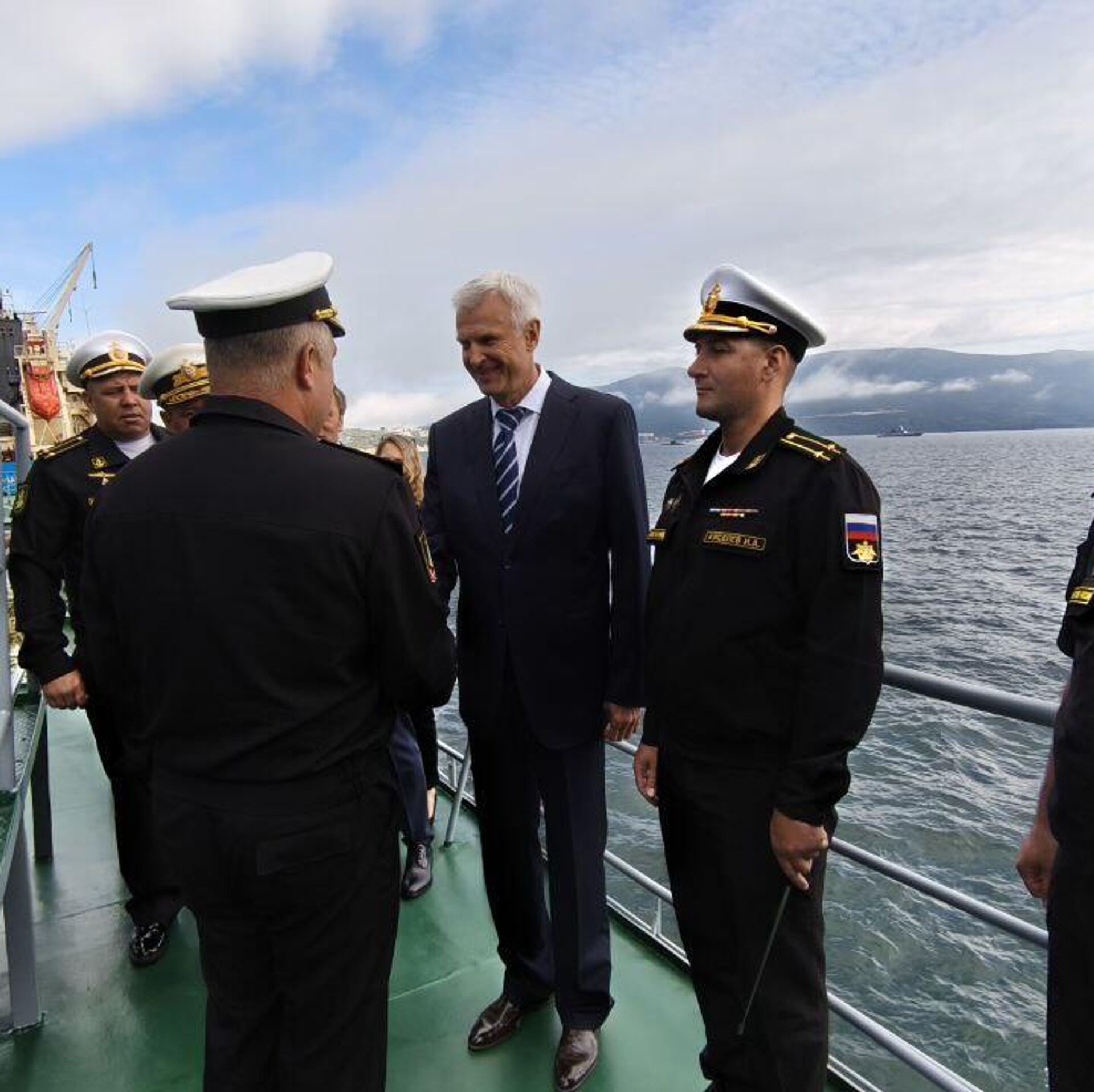 Una escuadra naval de la Flota del Pacífico rusa llegó a la bahía de Nagaev frente a la ciudad de Magadán, en el Lejano Oriente ruso, en el marco de la campaña patriótica La fuerza de la verdad 2025.