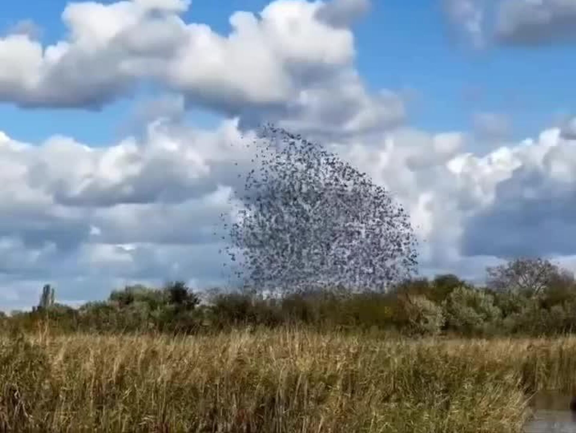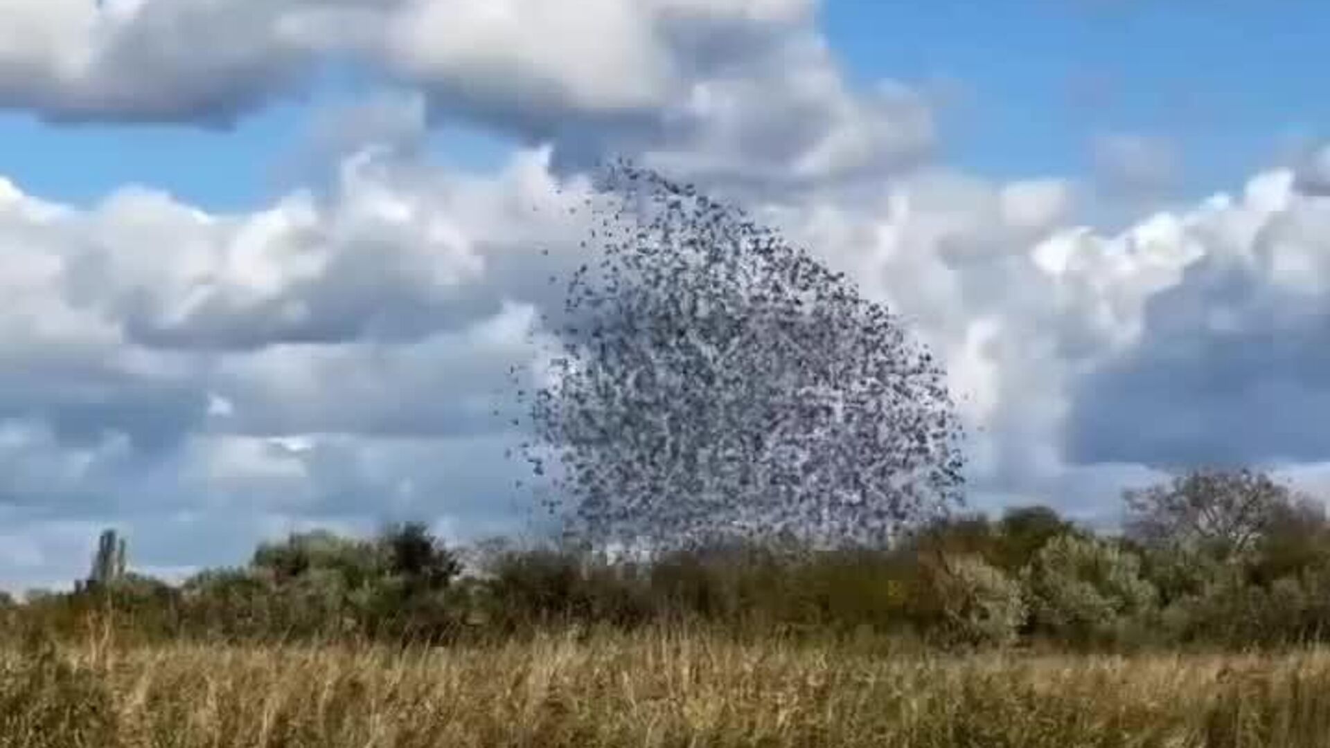 Las imágenes muestran el comportamiento de bandadas de aves. Es un espectacular fenómeno natural en el que grandes agrupaciones de aves, normalmente estorninos, vuelan de forma sincronizada y coordinada por el cielo, formando figuras caprichosas y en constante cambio.