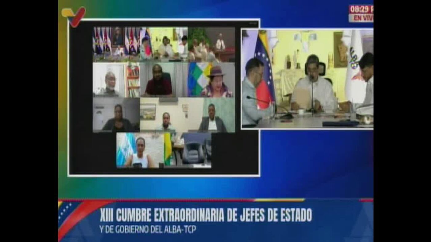 En el texto, signado en el marco de la XIII Cumbre Extraordinaria de jefes de Estado y ministros del ALBA-TCP, el bloque se solidarizó con el presidente venezolano, Nicolás Maduro.