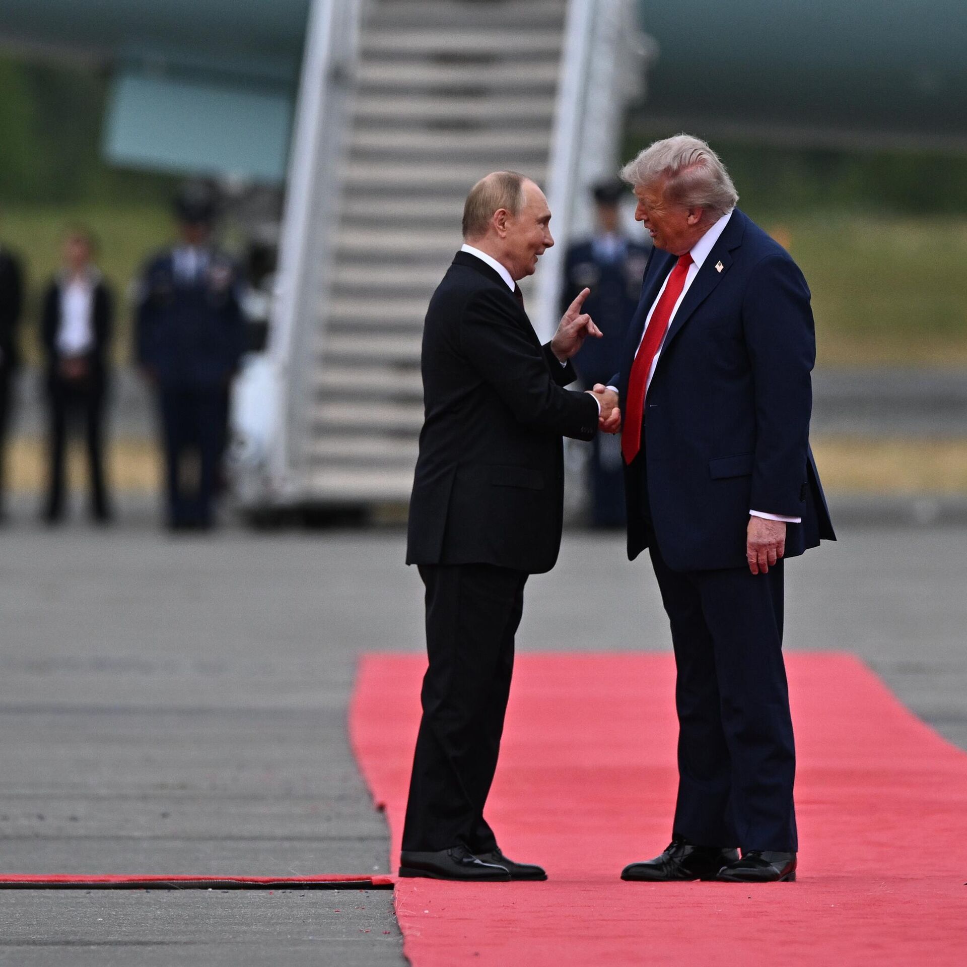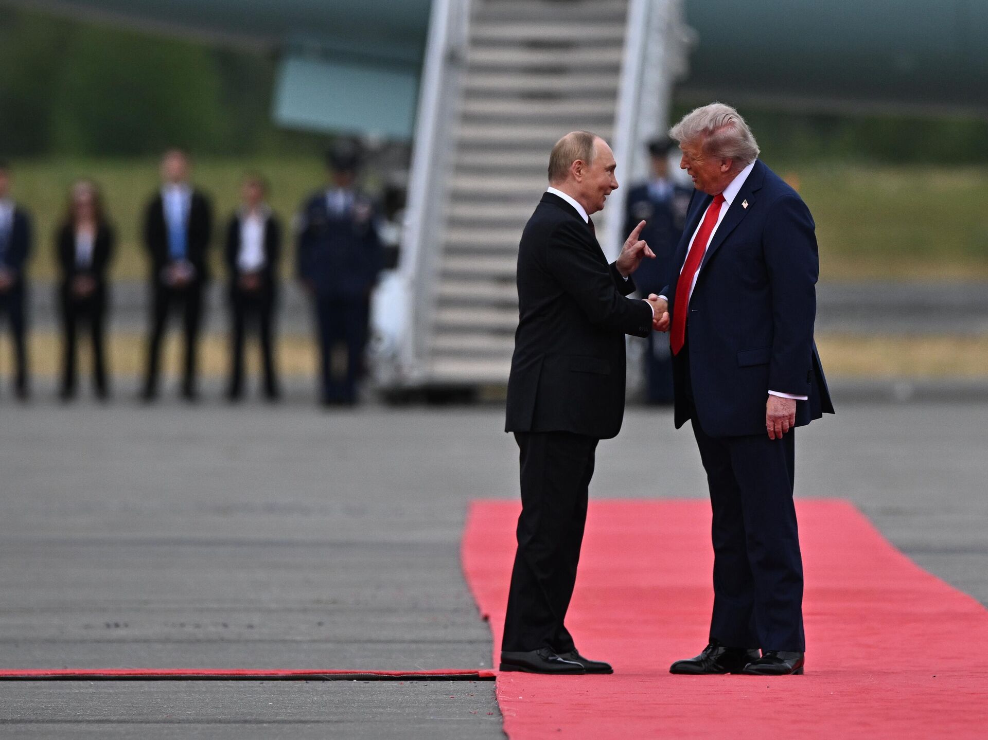 El presidente ruso, Vladímir Putin, y su homólogo estadounidense, Donald Trump, durante una reunión en la Base Conjunta Elmendorf-Richardson en Alaska.