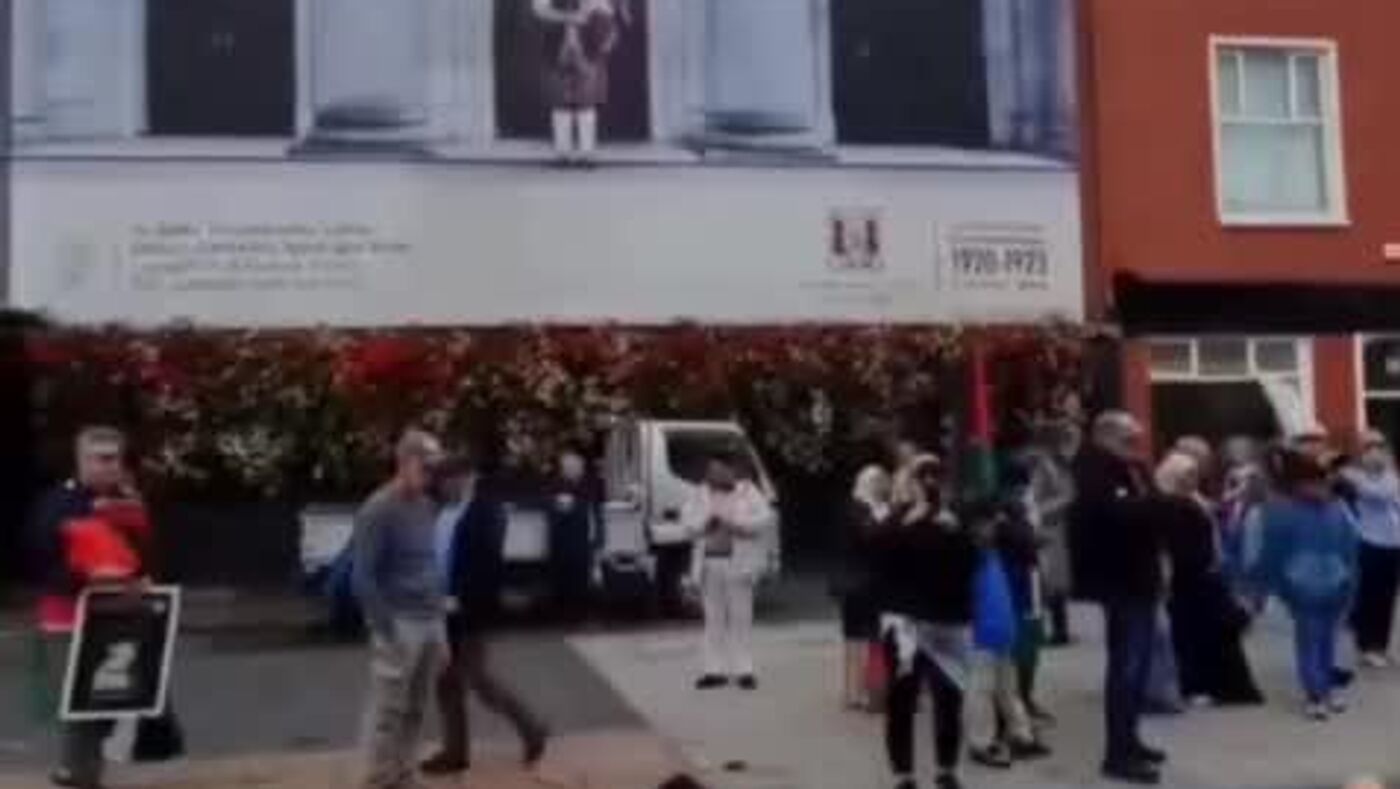 Los manifestantes ondearon banderas palestinas y recordaron la historia de Cork, que fue arrasada en 1920 durante la ocupación británica.