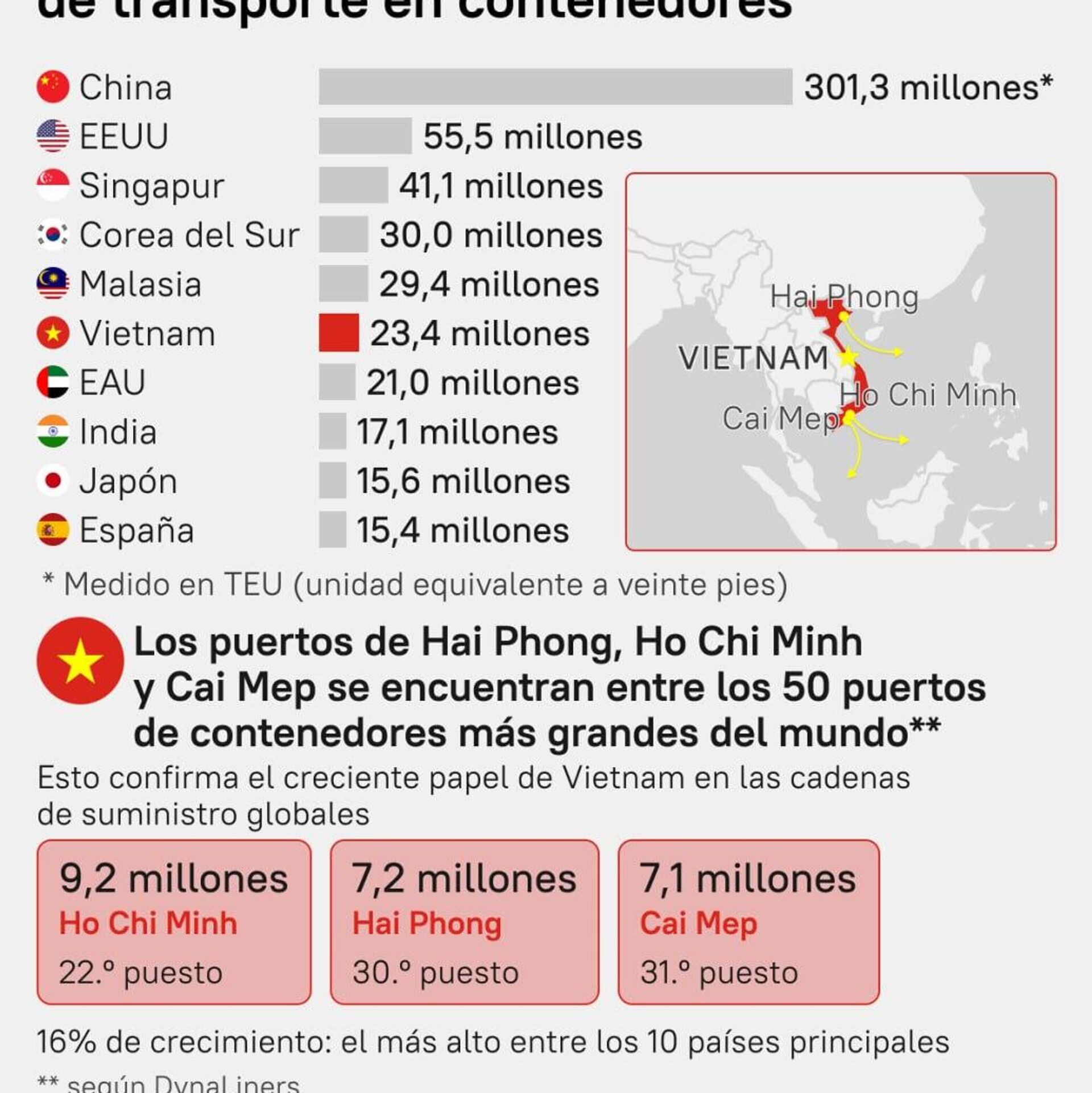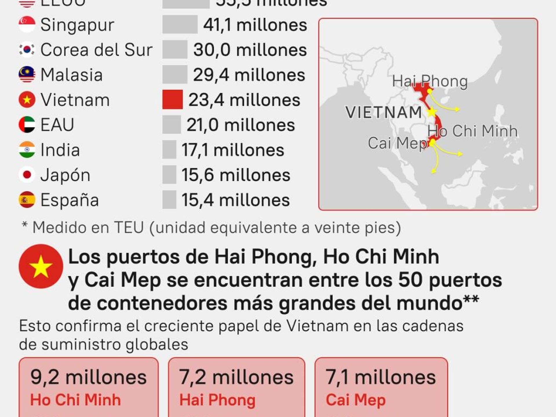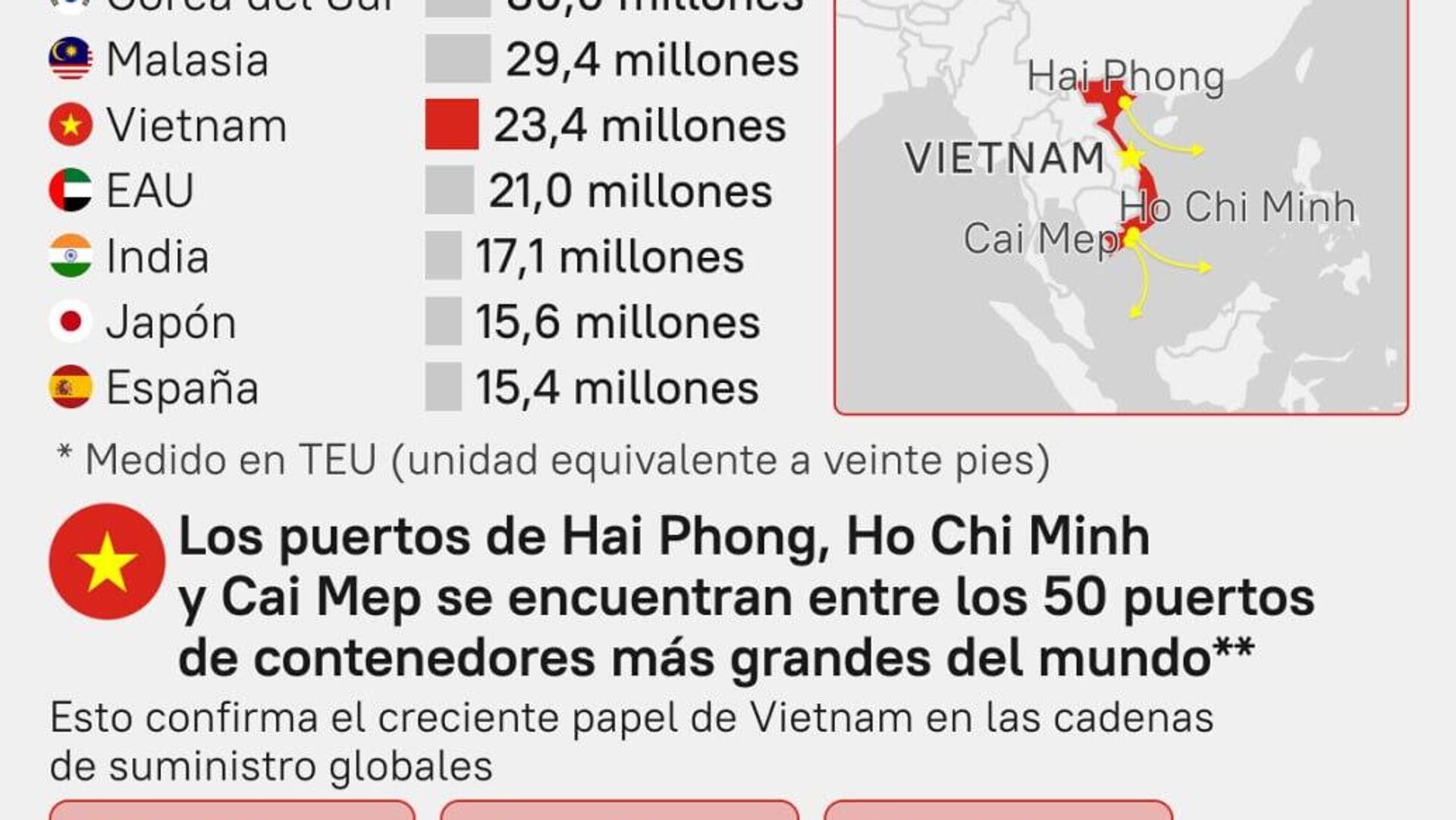 #SputnikGráfico | ¿Qué países son líderes en volúmenes de transporte en contenedores?