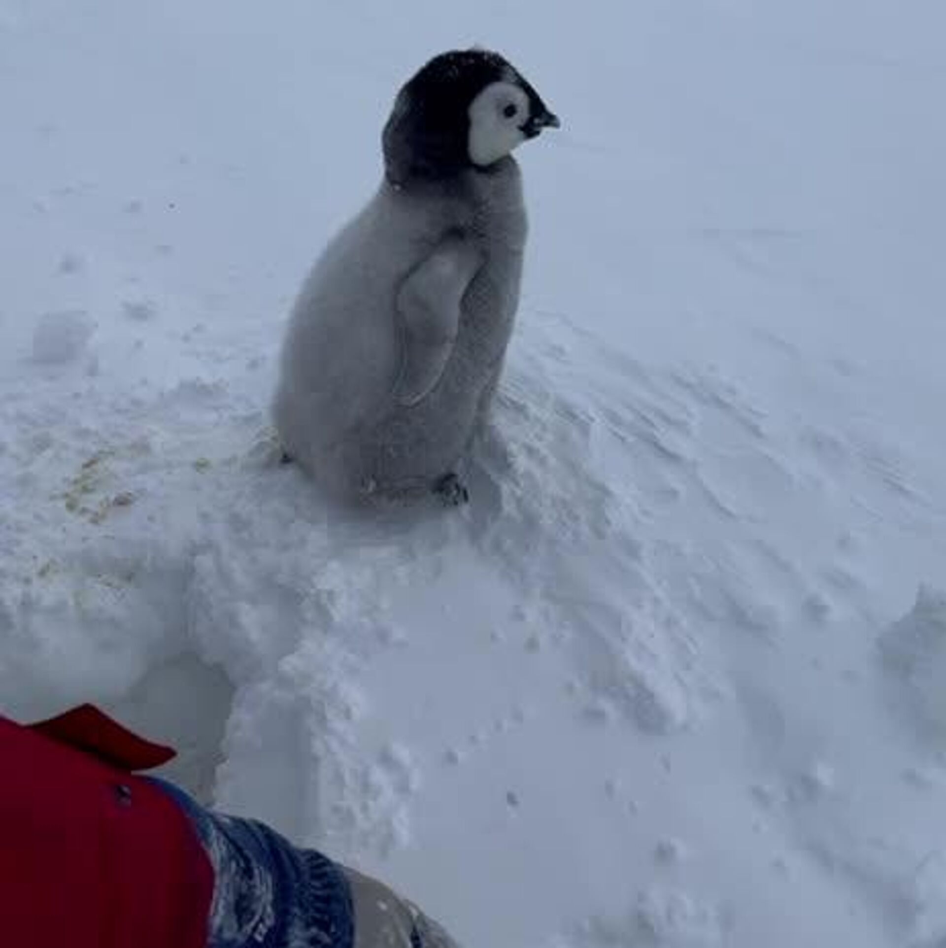"Las observaciones rutinarias de la colonia de pingüinos emperadores se convirtieron en una operación de rescate. Tras un fuerte huracán en el archipiélago de Haswell, cerca de la estación Mirni, los ornitólogos vieron el pico de un pingüino sobre la superficie de la nieve. El crío apenas podía mover la cabeza", informó el servicio de prensa del Instituto de Investigación Científica del Ártico y la Antártida.
