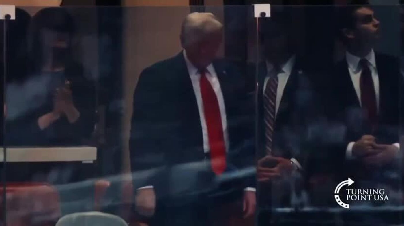 Entre aplausos y gritos de "EEUU, EEUU", Trump tomó su asiento en un palco privado, donde lo acompaña la primera dama, Melania Trump.