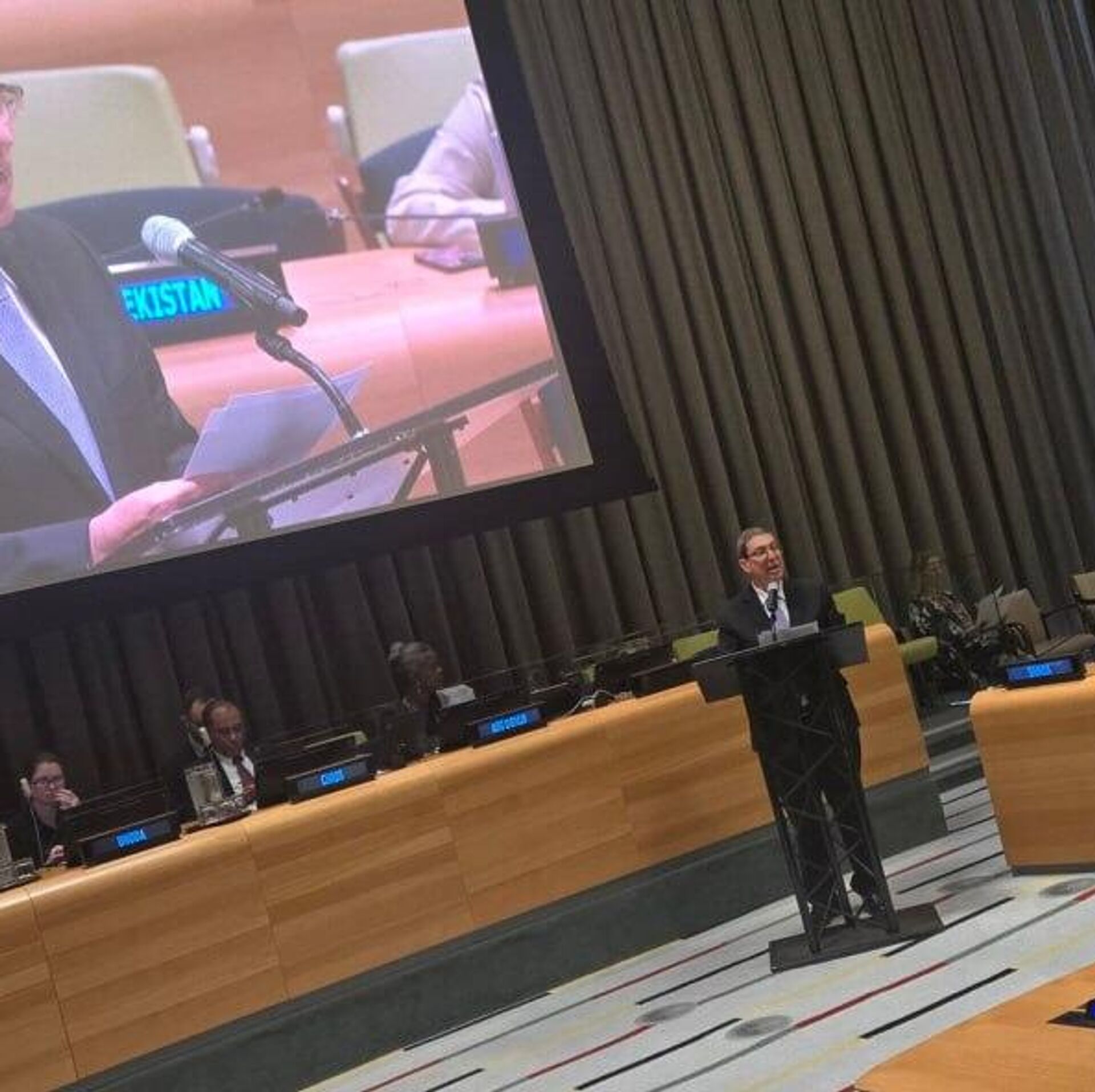 "Constituye una amenaza directa a la República Bolivariana de Venezuela e intenta justificar una agresión militar", dijo el jefe de la diplomacia cubana en la séptima reunión ministerial del Grupo de Amigos en Defensa de la Carta de la ONU.