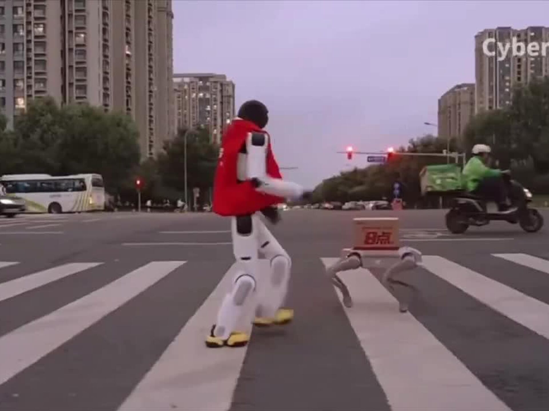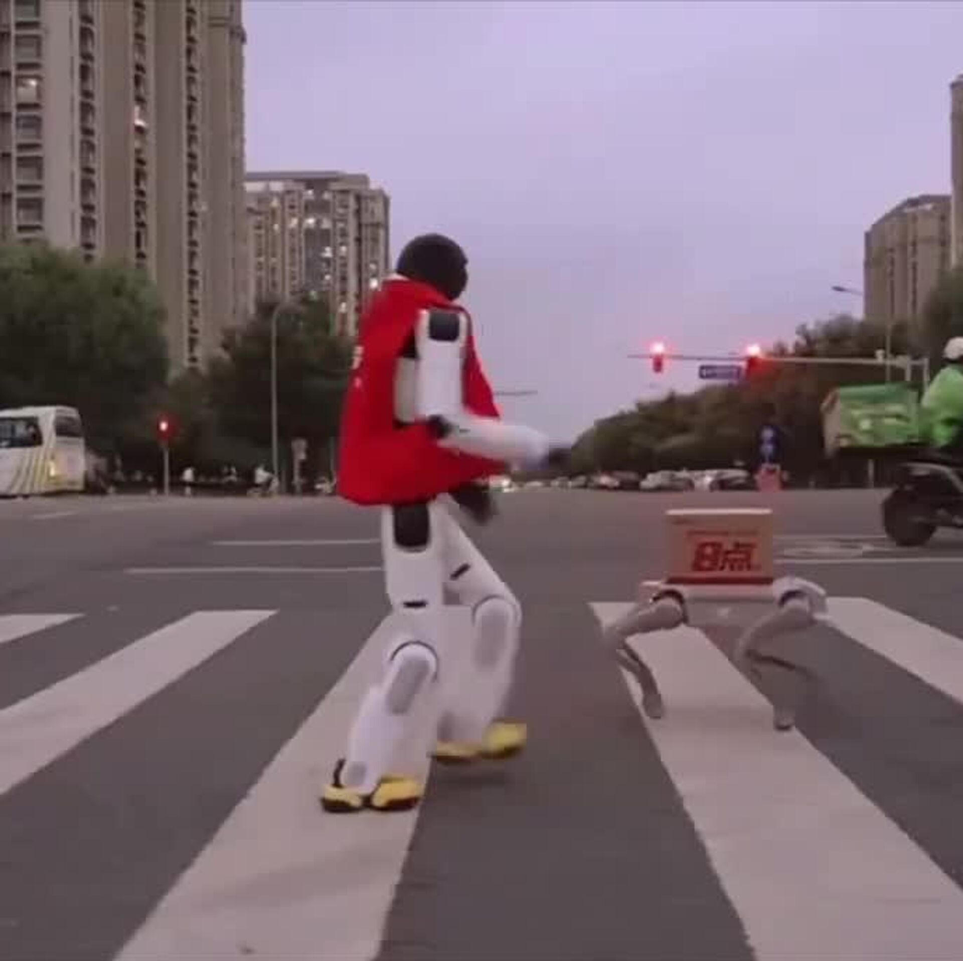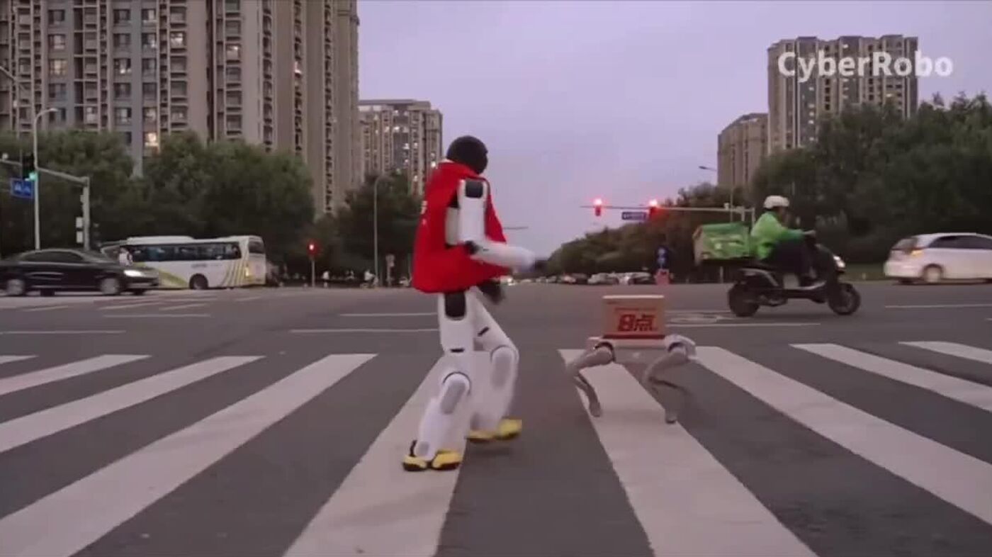 Pero ahora, en China se lanzó un servicio en el que el robot humanoide AGIBOT Lingxi X2 acompaña a un perro robótico autónomo. El último se encarga de transportar la mercancía, mientras que el primero se encarga de entregarla "de mano en mano" al cliente y saludarlo.