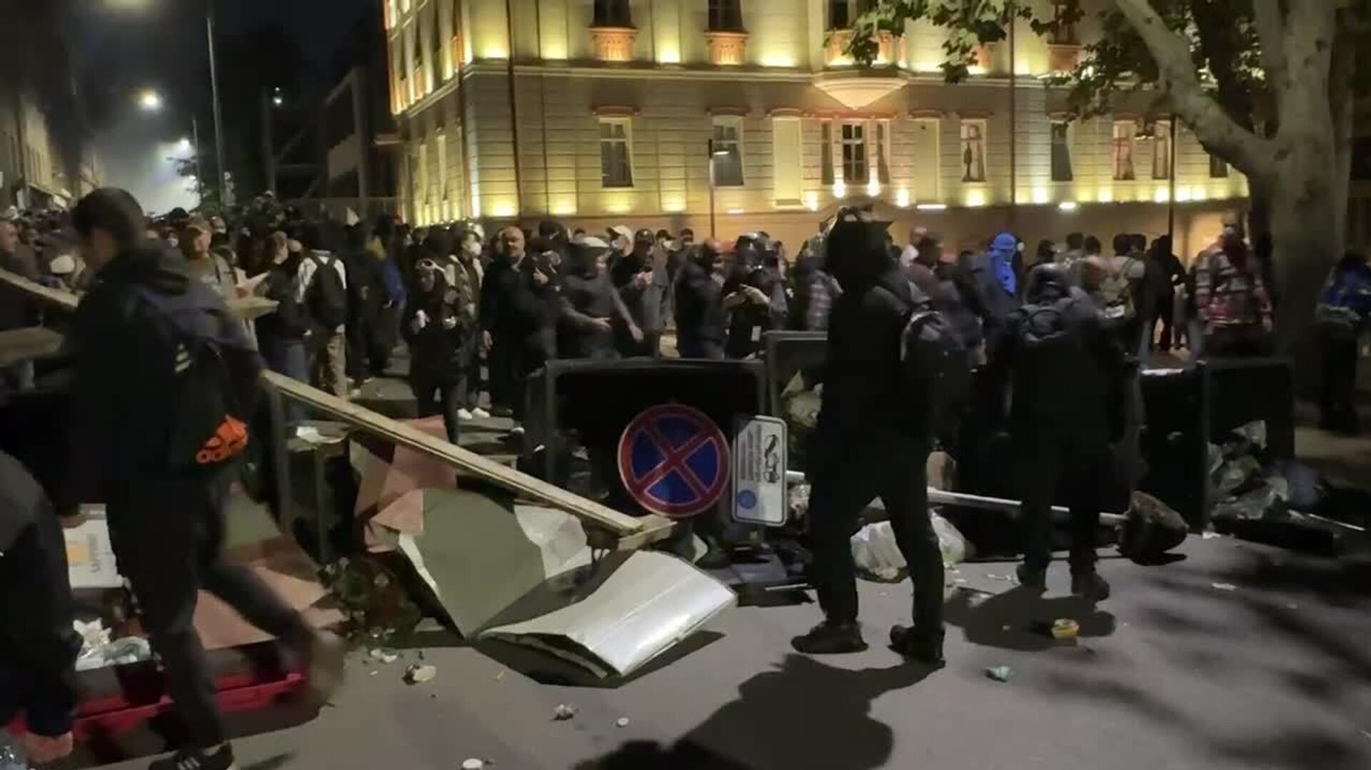 Conforme a los últimos datos, las fuerzas especiales de Georgia lograron expulsar a los manifestantes del palacio presidencial, pero los opositores continúan levantando barricadas en otras zonas de la capital georgiana, y el número de agentes de seguridad heridosasciende a 14, precisó el Ministerio del Interior.