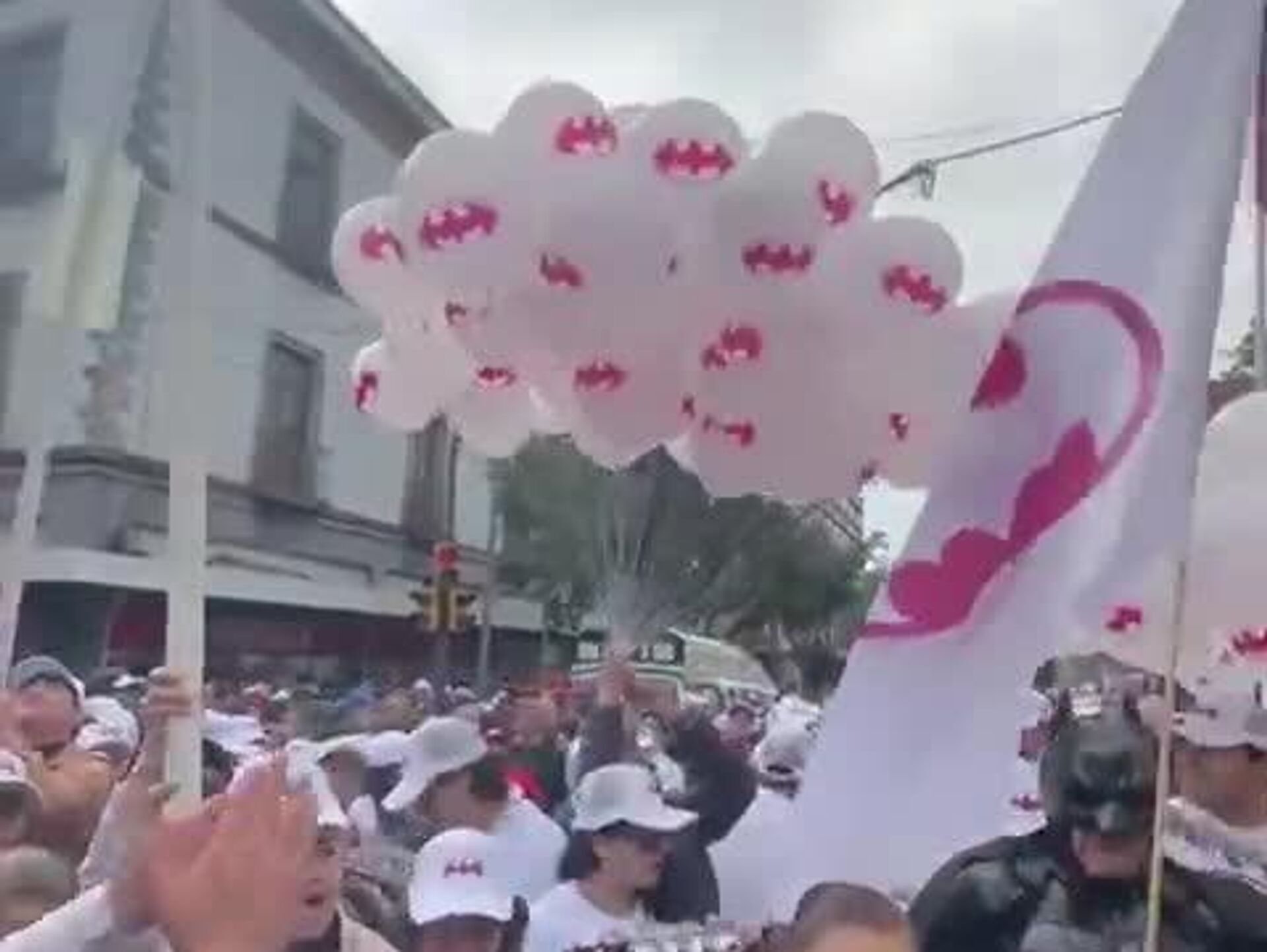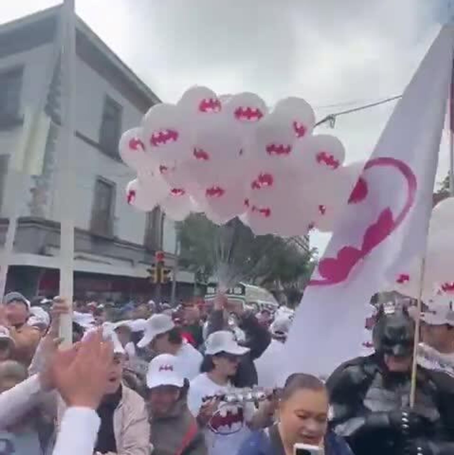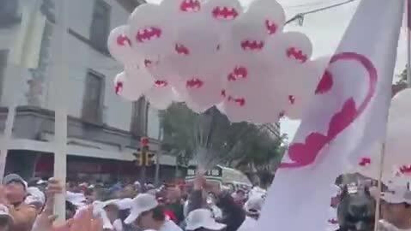 Un hombre se disfrazó de 'El caballero de la noche' y llegó al Zócalo de la capital mexicana, acompañado de música y globos, para escuchar el discurso de la mandataria.