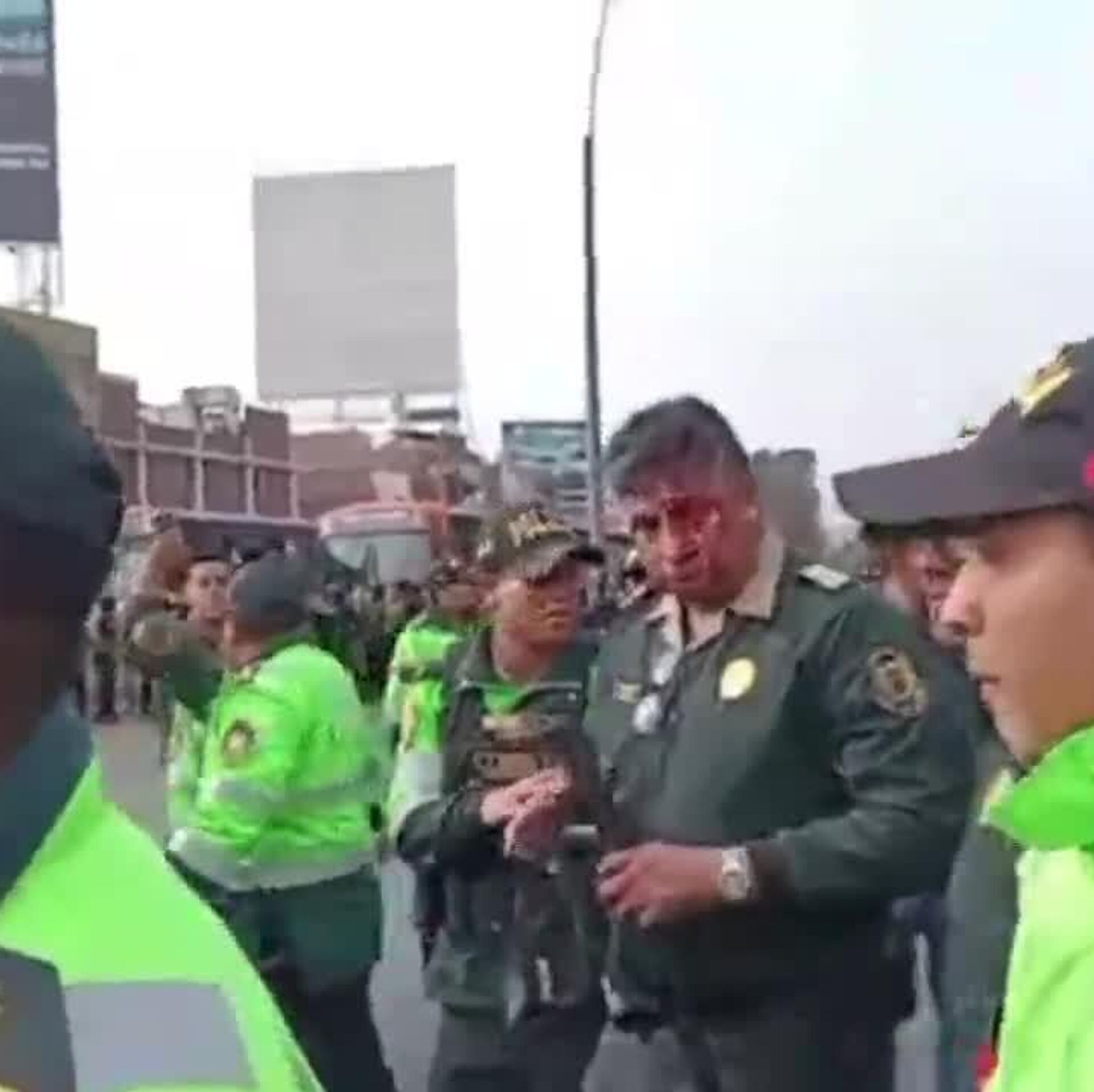 Durante la manifestación se registraron enfrentamientos de los manifestantes con la policía. El coronel Martín Solís Moscoso, jefe de la División Policial Lima 3, fue herido en la frente por una piedra lanzada durante los disturbios.