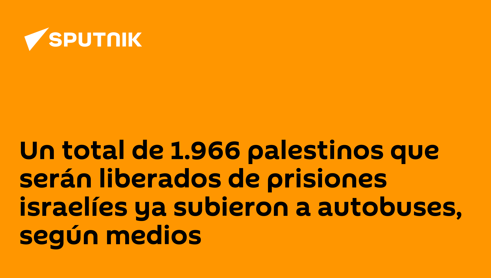Un total de 1.966 palestinos que serán liberados de prisiones israelíes ya subieron a autobuses, según mediosEntre ellos se encuentran 250 palestinos que cumplían cadena perpetua en prisiones israelíes y serán liberados en Cisjordania, Jerusalén y el extranjero.Síguenos en Sputnik Mundo / Sputnik Mundo Visual
