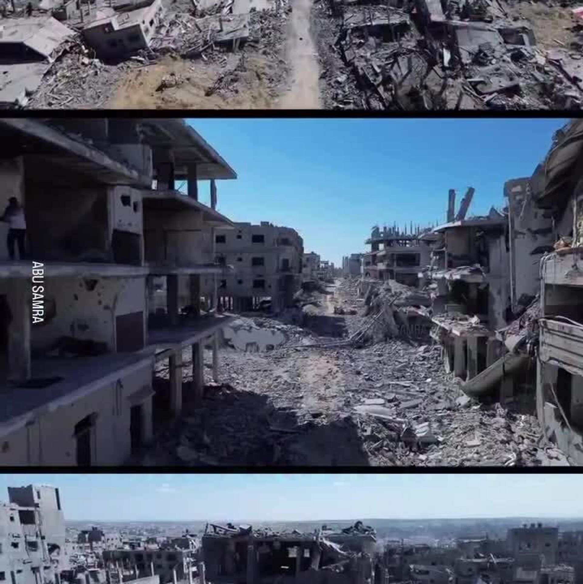 Los videos muestran cómo los bombardeos han convertido esta zona densamente urbanizada en un paisaje devastado, donde no queda ningún edificio en condiciones habitables.