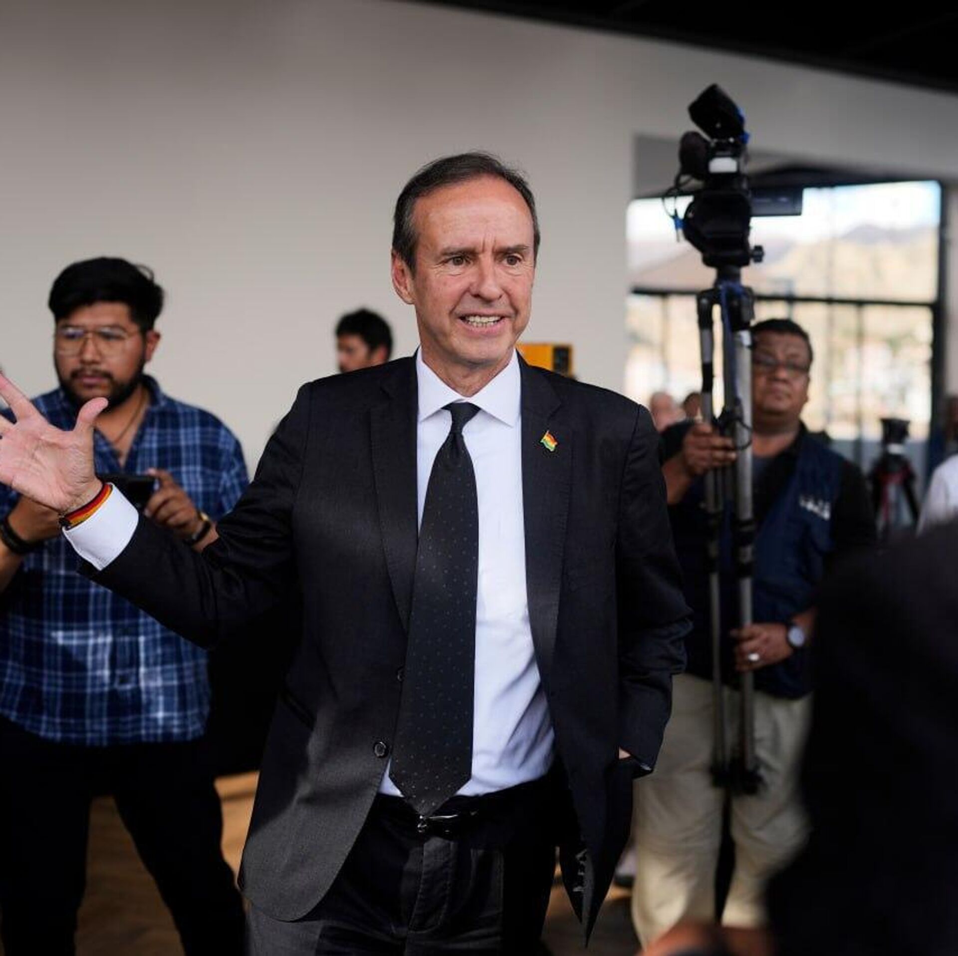 17:20 GMT 19.10.2025 (actualizado: 17:23 GMT 19.10.2025) Jorge Tuto Quiroga, candidato de la Alianza Libre, emite su voto en las elecciones presidenciales de Bolivia