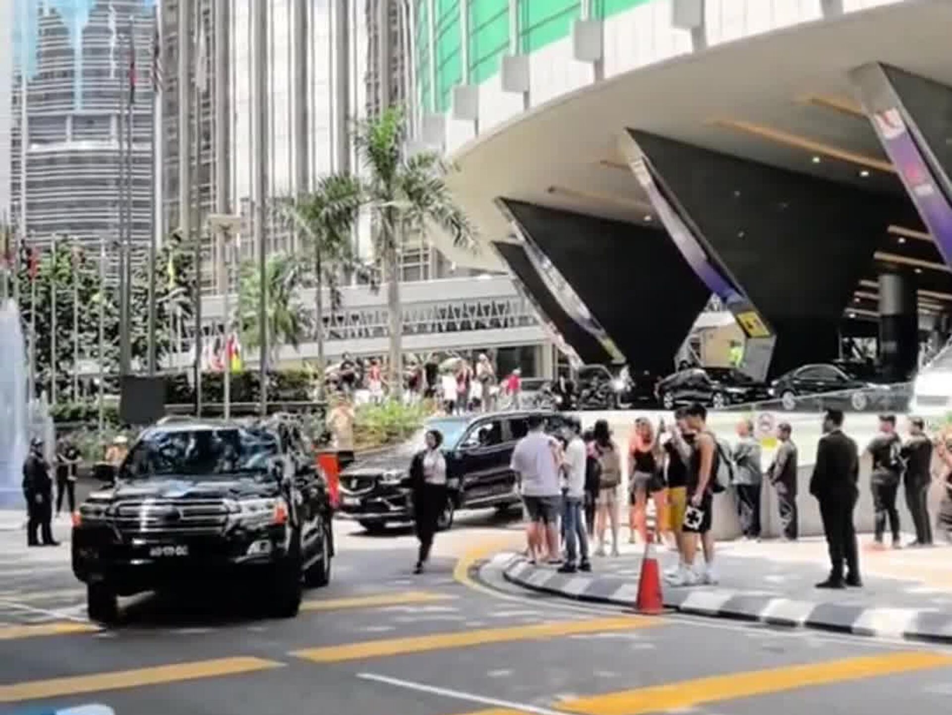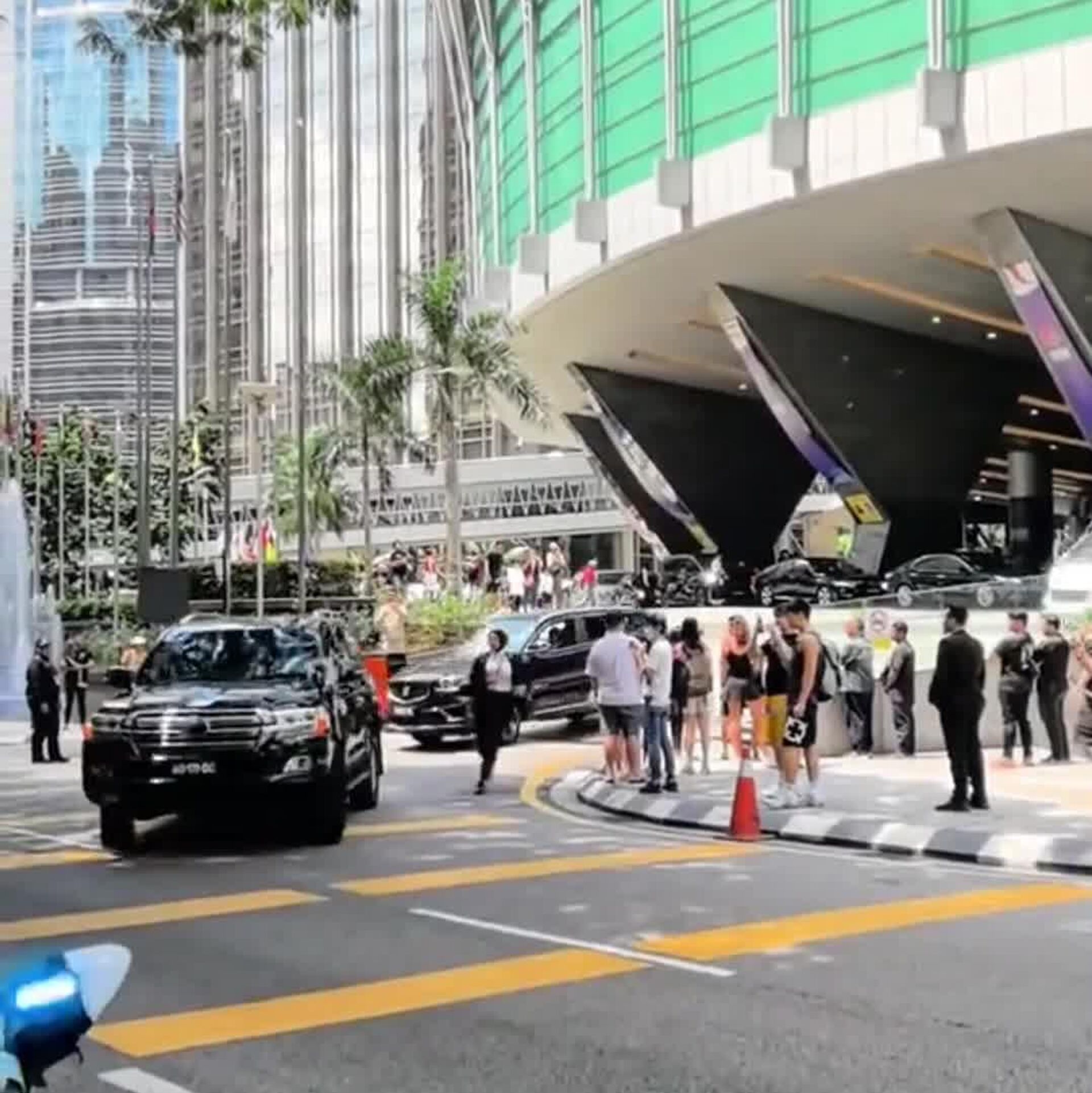 En redes sociales se viralizó un video donde corren junto al vehículo, que acompañaba a la delegación japonesa, y saltan a las puertas traseras en movimiento, una maniobra que, según las suposiciones de los usuarios de internet, podría formar parte de su protocolo para evitar cualquier acercamiento.