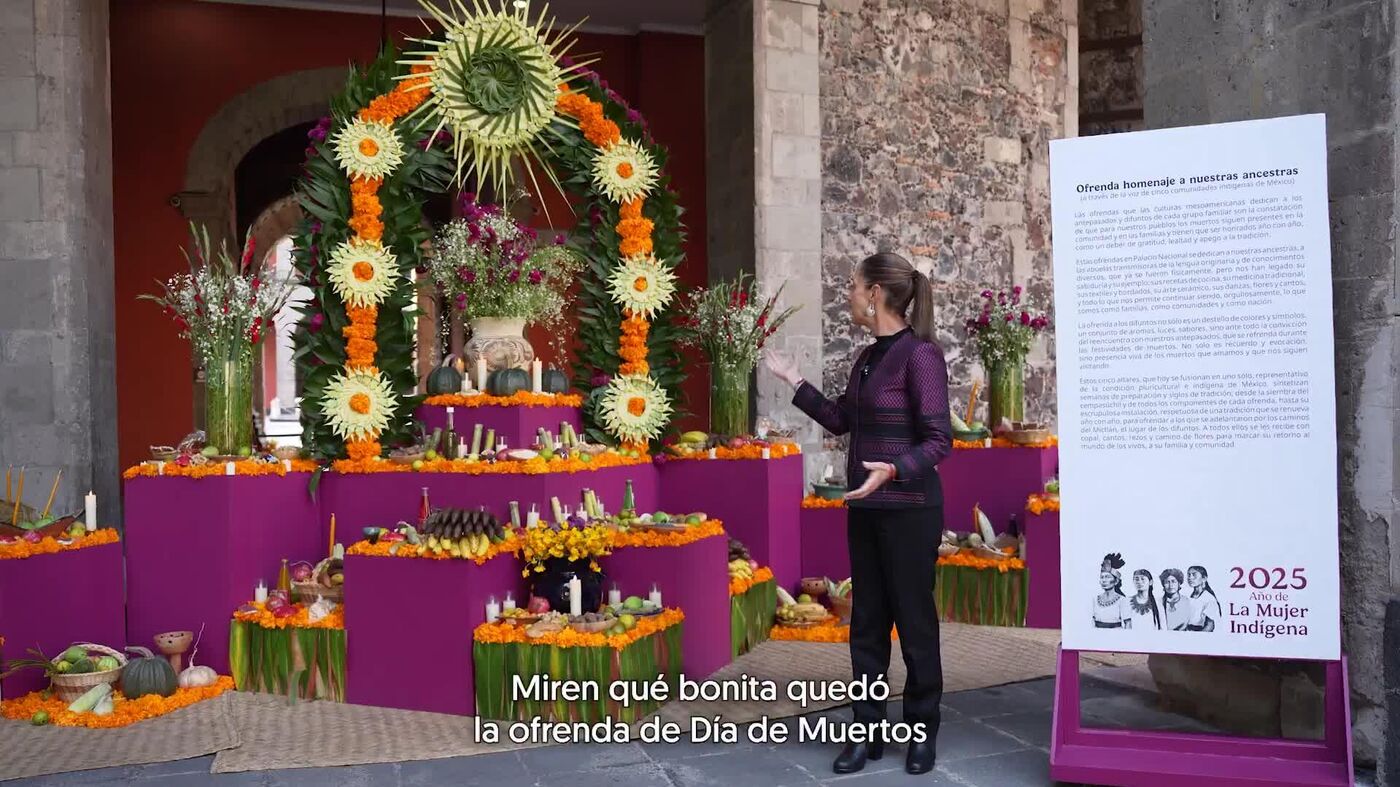 Asimismo, la mandataria del país latinoamericano resaltó que "es una tradición muy distinta a la de otras culturas. Es una visión de la muerte muy [diferente] que viene de los pueblos originarios (...) e indígenas", añadió.Para finalizar, Sheinbaum añadió que, debido a la relevancia de las mujeres indígenas, este año la ofrenda era para ellas."Por su fuerza, su sabiduría y su amor infinito. Ancestras de todas y todos los mexicanos", subrayó.