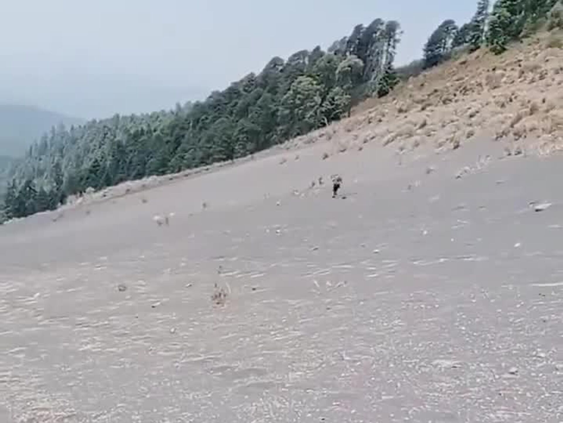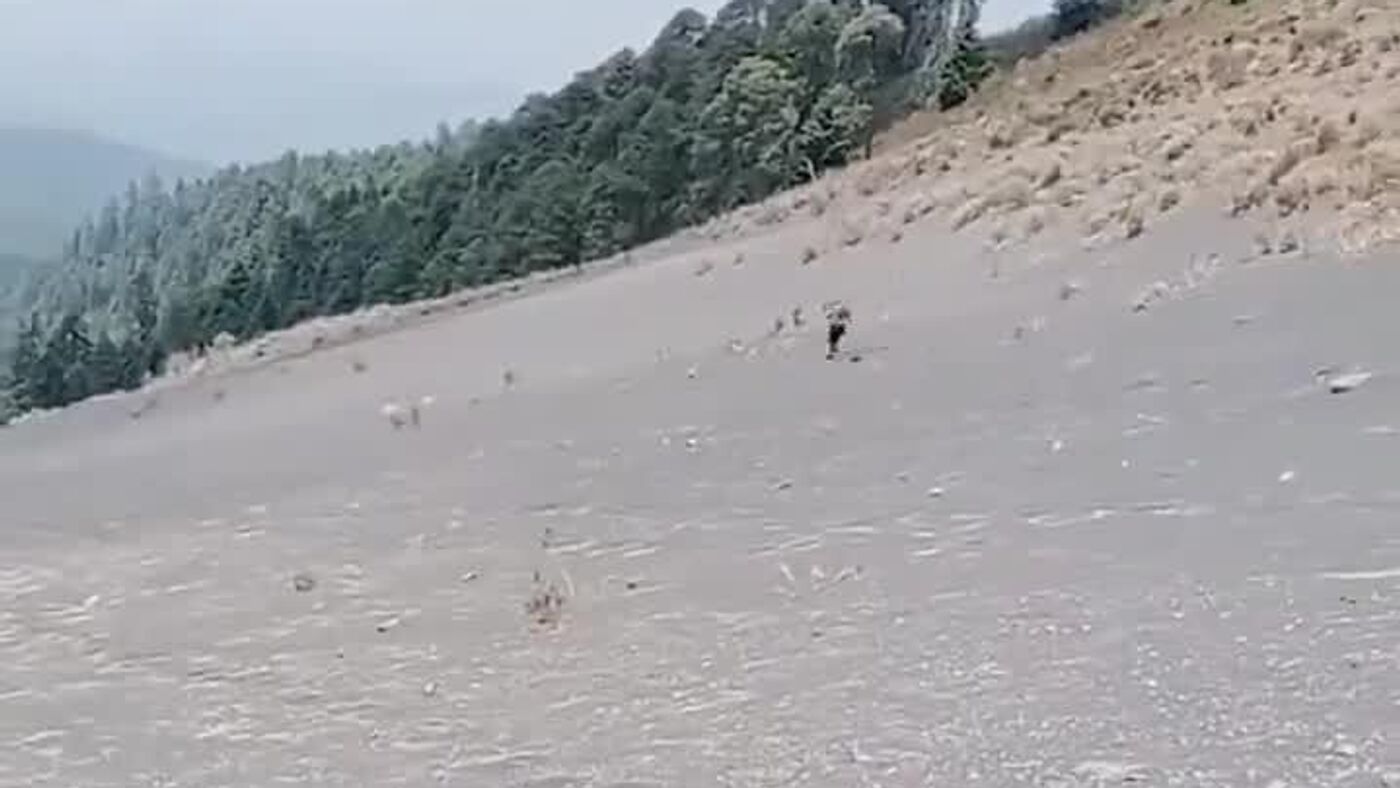 ¡De alto riesgo! Excursionistas descienden del Popocatépetl durante un momento de actividad volcánica