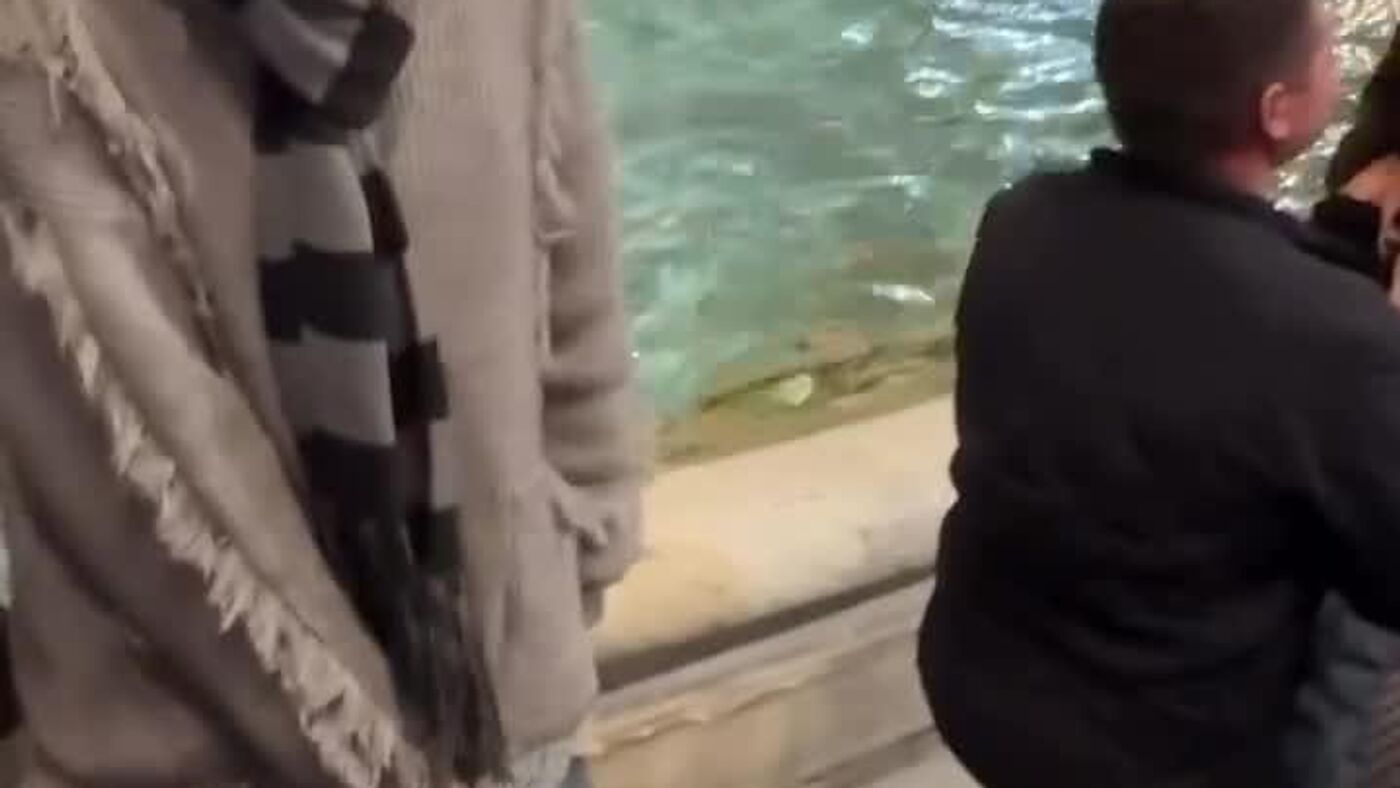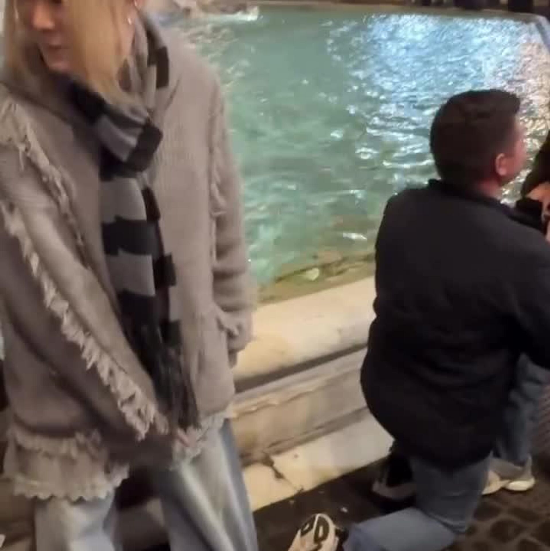 Un hombre, al arrodillarse al lado de la fuente de Trevi para pedir matrimonio a su novia, no se dio cuenta y pisó los jeans de la chica que estaba detrás. Para no alterar este emocionante momento, la 'cautiva' permaneció inmóvil.