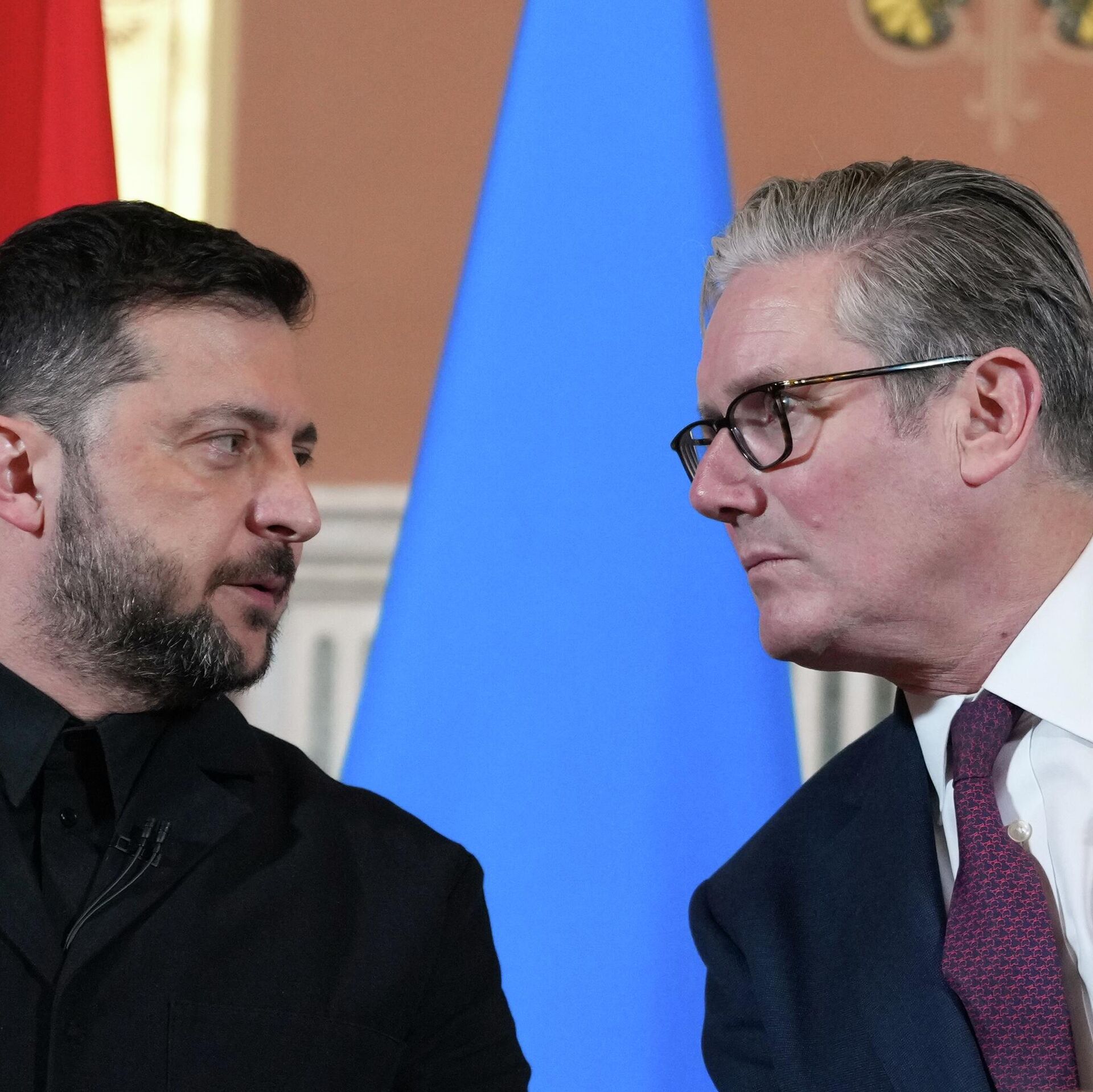 Volodímir Zelenski, y el primer ministro británico, Keir Starmer, hablan con los medios tras una reunión de la llamada coalición de los dispuestos el 24 de octubre de 2025 en Londres, el Reino Unido  - Sputnik Mundo, 1920, 02.12.2025