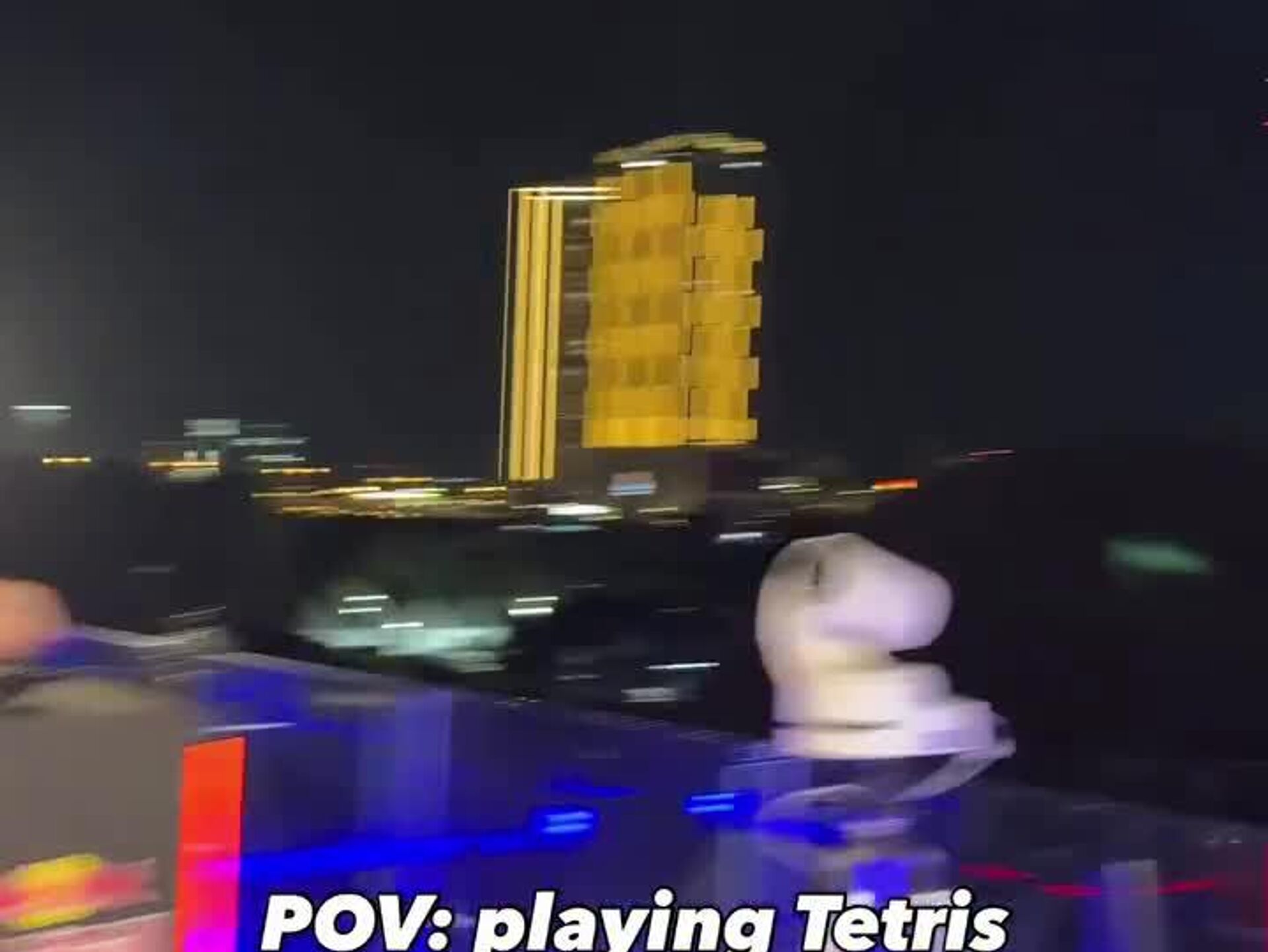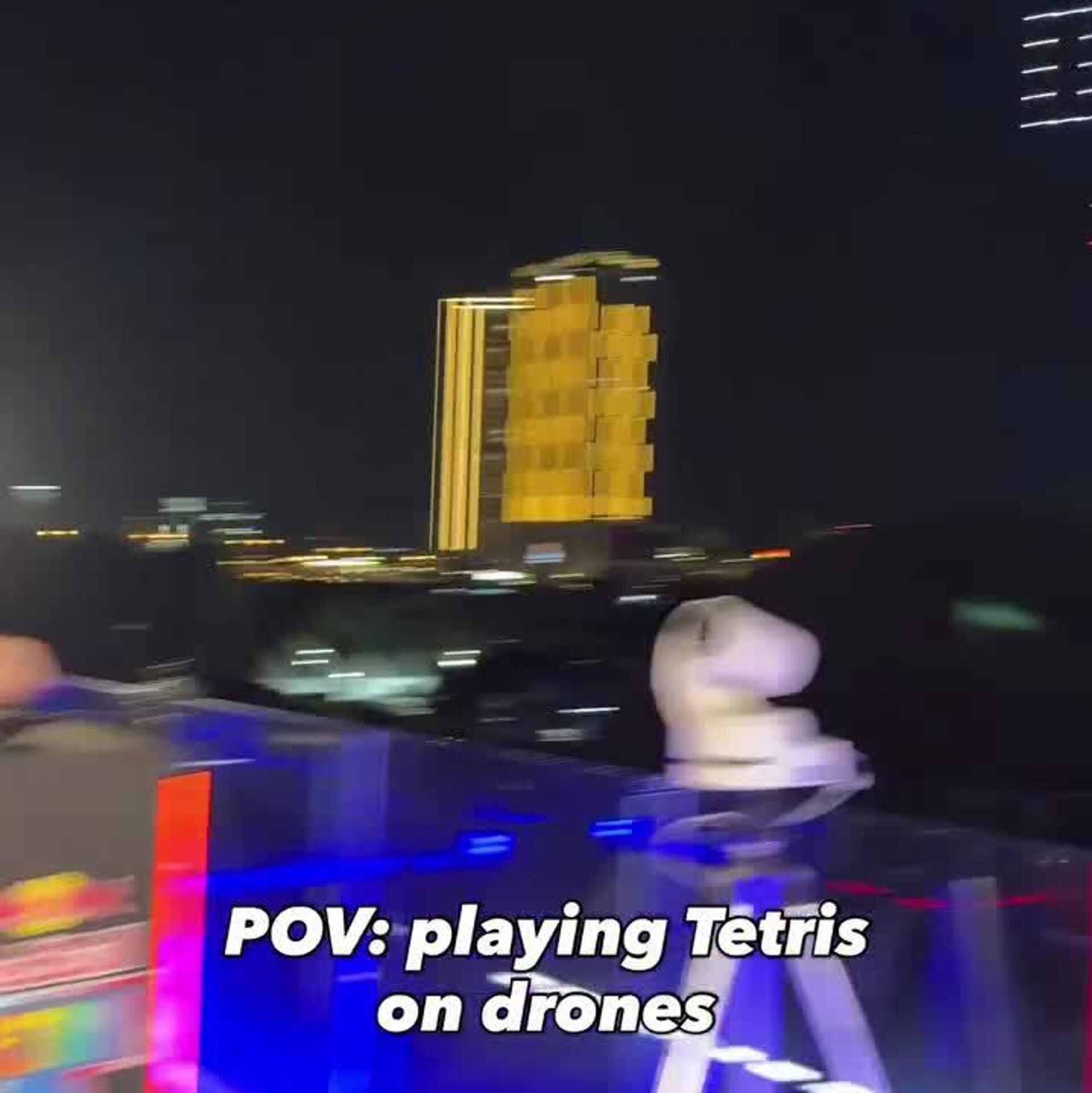 La monumental partida de Tetris tuvo lugar en el emblemático Marco de Dubái de 150 metros de altura, que se utilizó como una pantalla de juego gigante. En lugar de píxeles, cientos de drones esbozaban las piezas en el cielo nocturno de la ciudad emiratí.