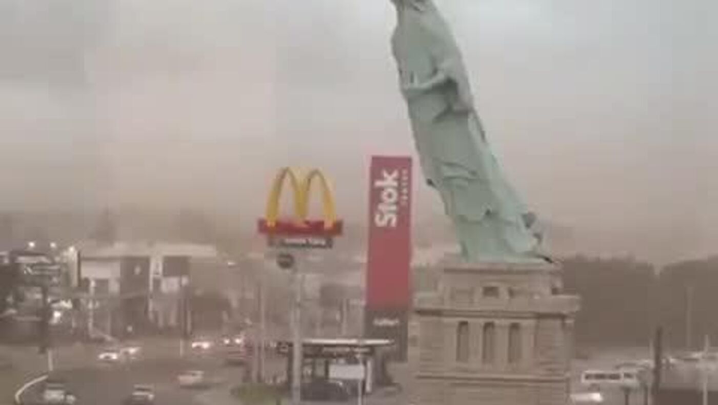 Fuertes ráfagas de viento que alcanzaron hasta 80 kilómetros por hora azotaron varias zonas del estado de Rio Grande do Sul, al sur del país sudamericano, provocando el colapso de una réplica de la Estatua de la Libertad en la ciudad de Guaíba.