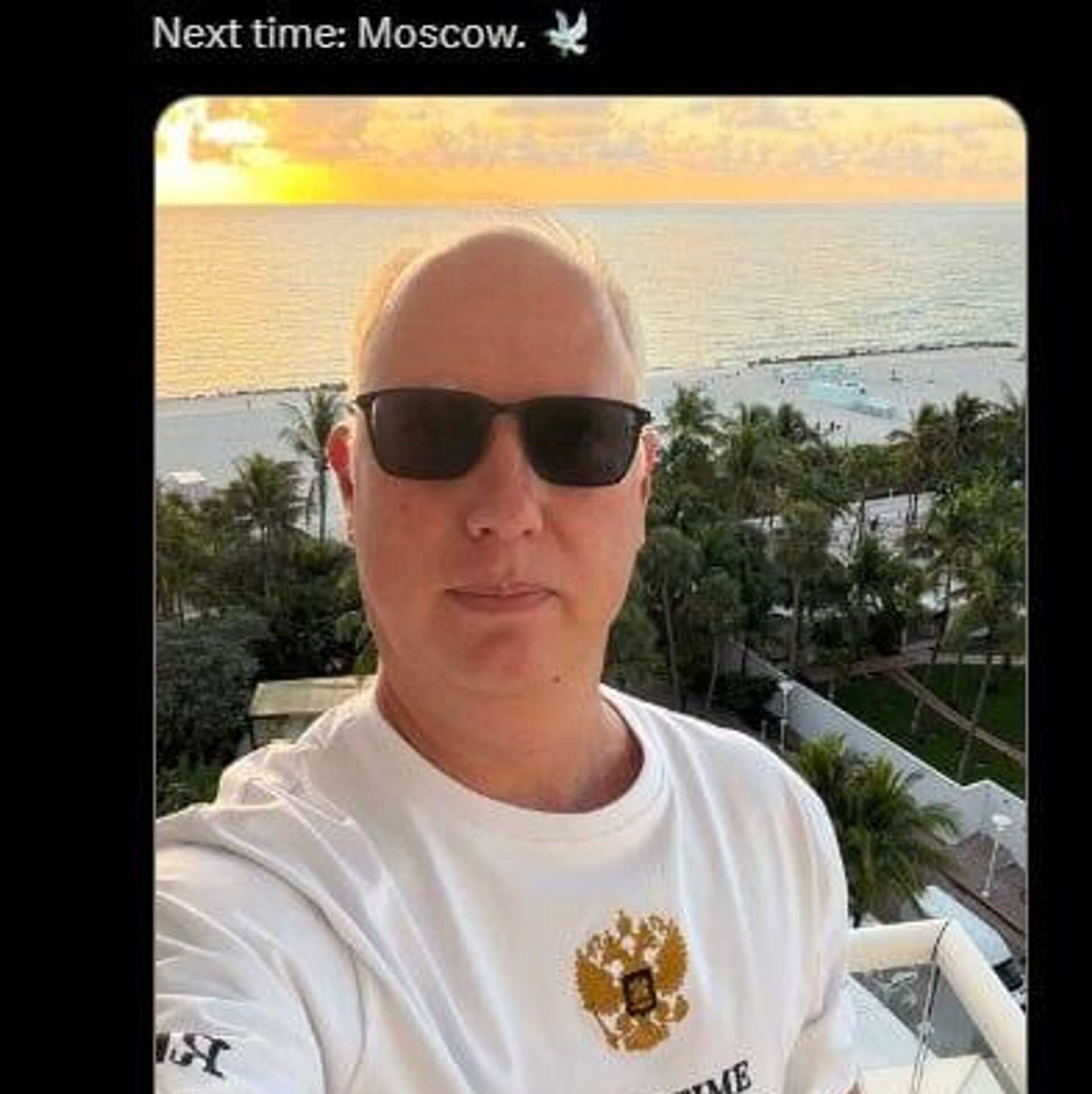"La próxima vez: Moscú", escribió en X, donde adjuntó una foto suya en Florida.