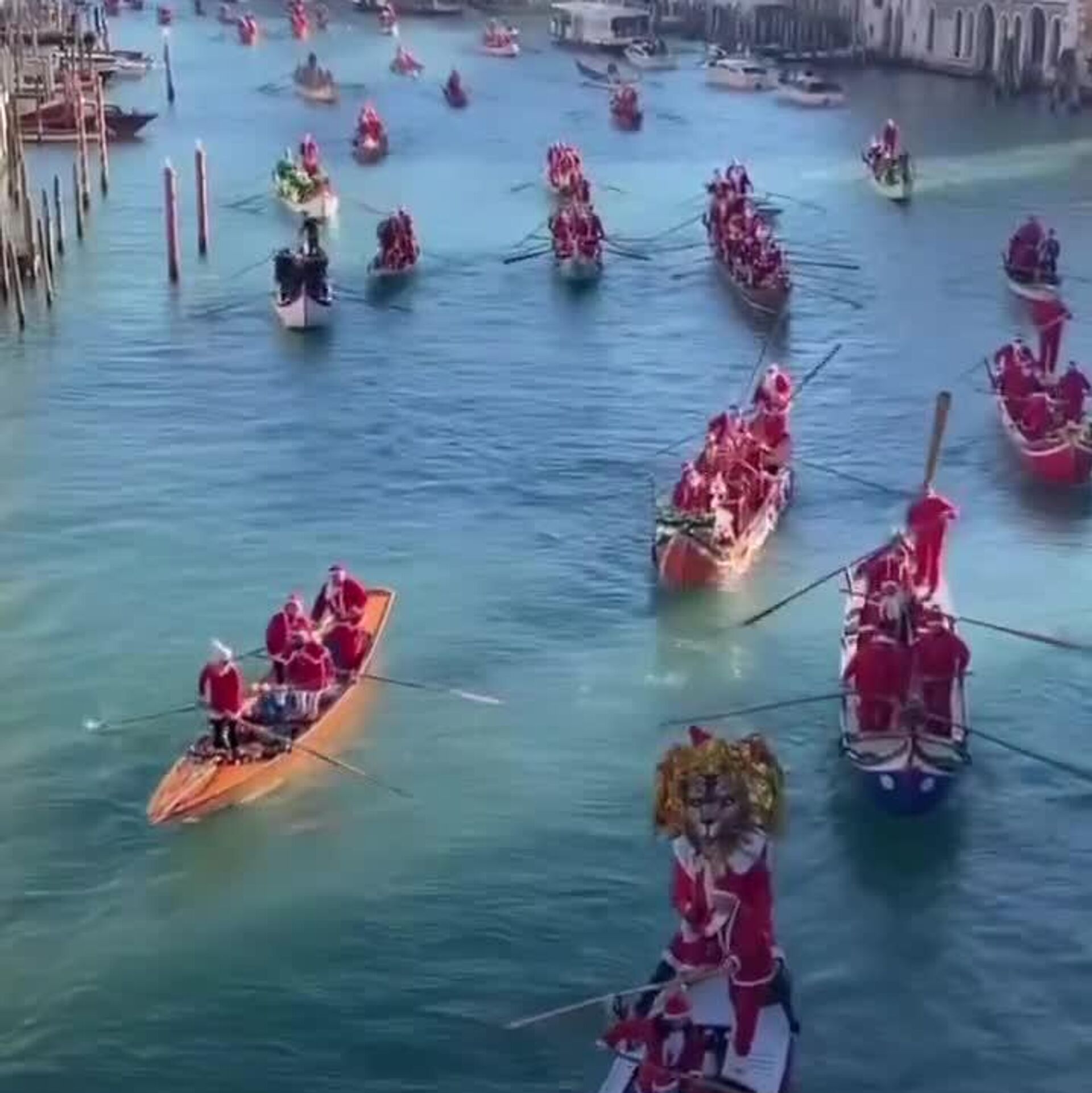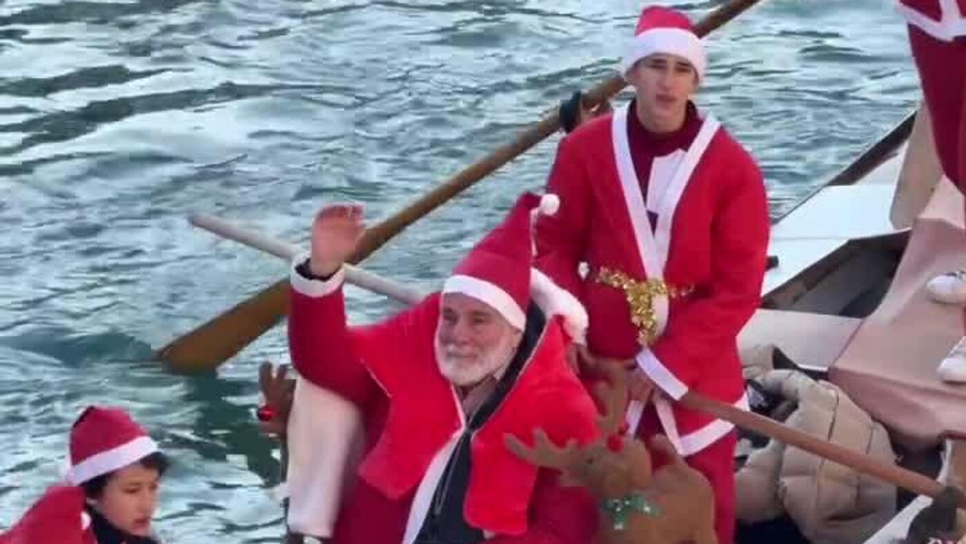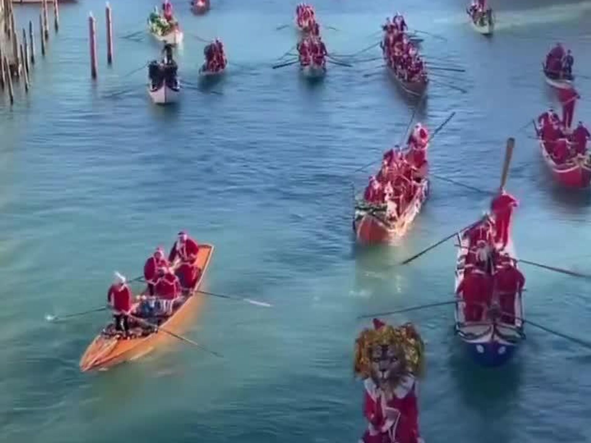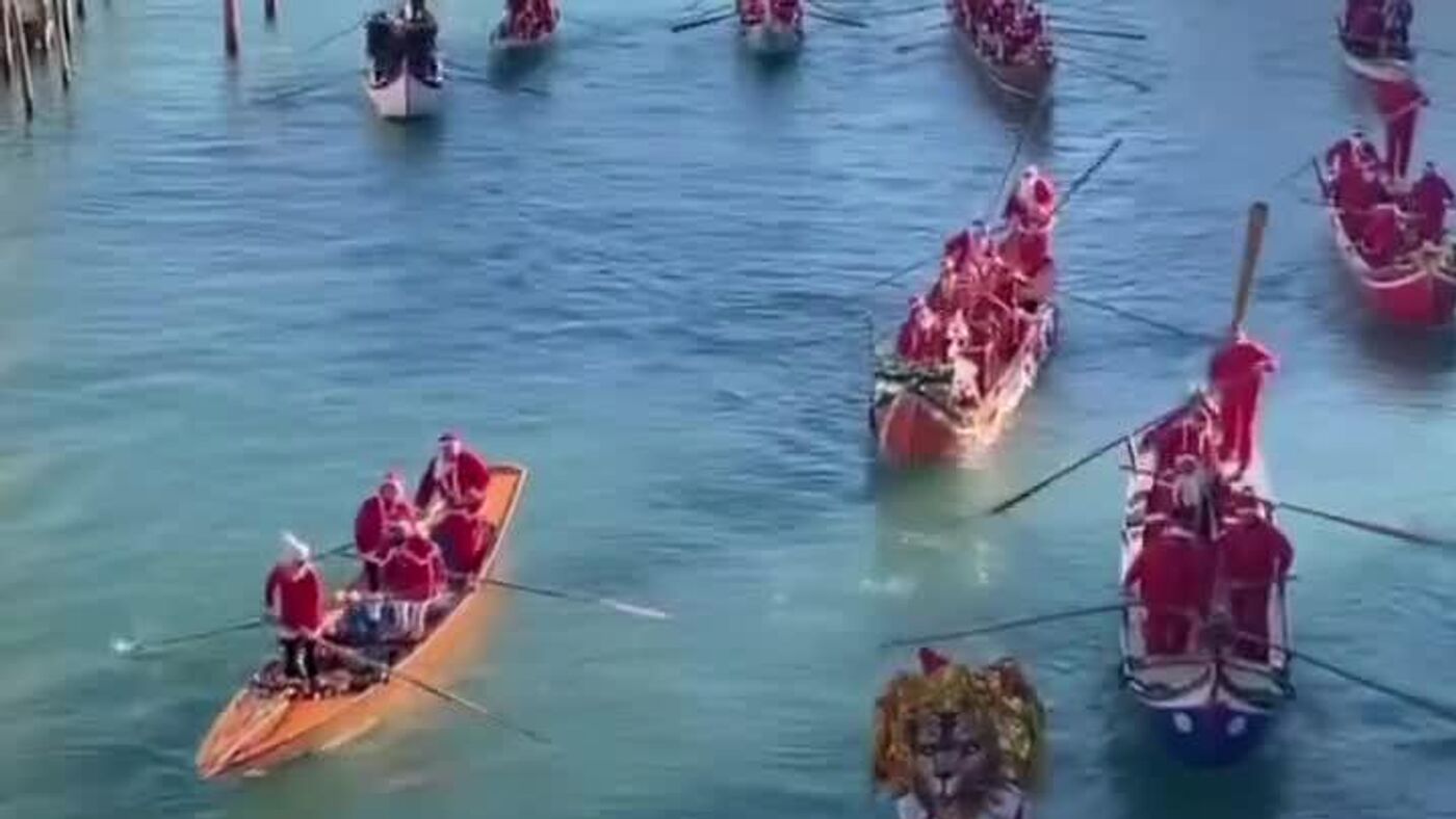 ¿Para qué trineos si hay botes? Una inusual regata de Santas recorre Venecia