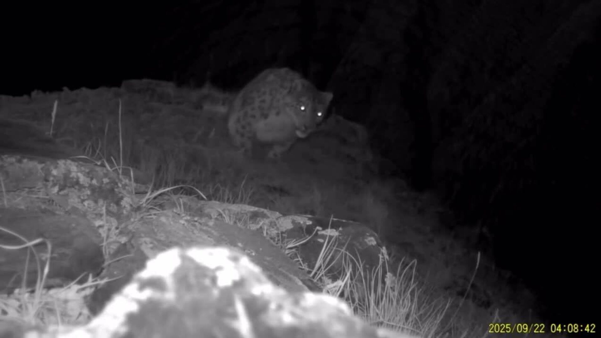Un leopardo rojo de las nieves, especie incluida en el Libro Rojo de Kazajistán, fue captado por una cámara trampa en el Parque Nacional Katon-Karagai, en las regiones montañosas del Altái. El registro confirma la presencia de este esquivo felino, que habita zonas de alta montaña y se encuentra bajo protección especial.