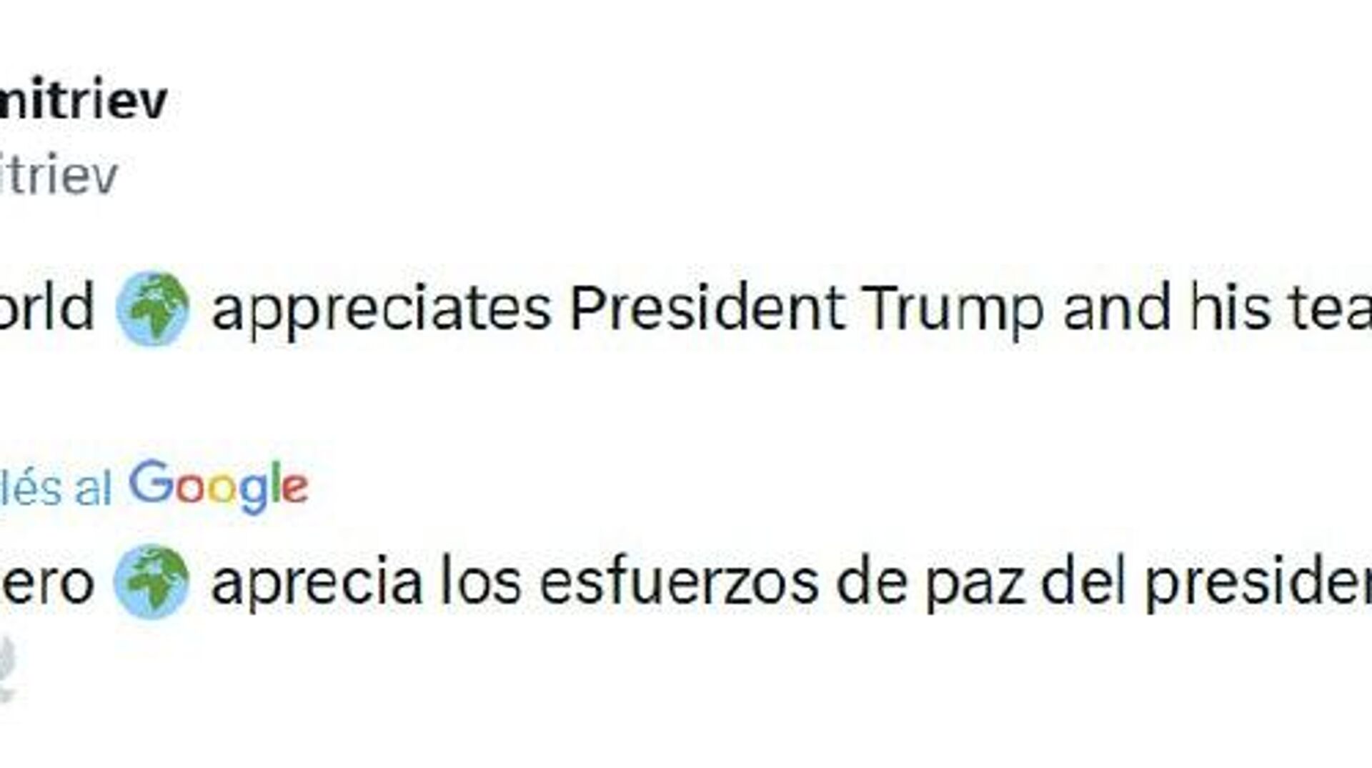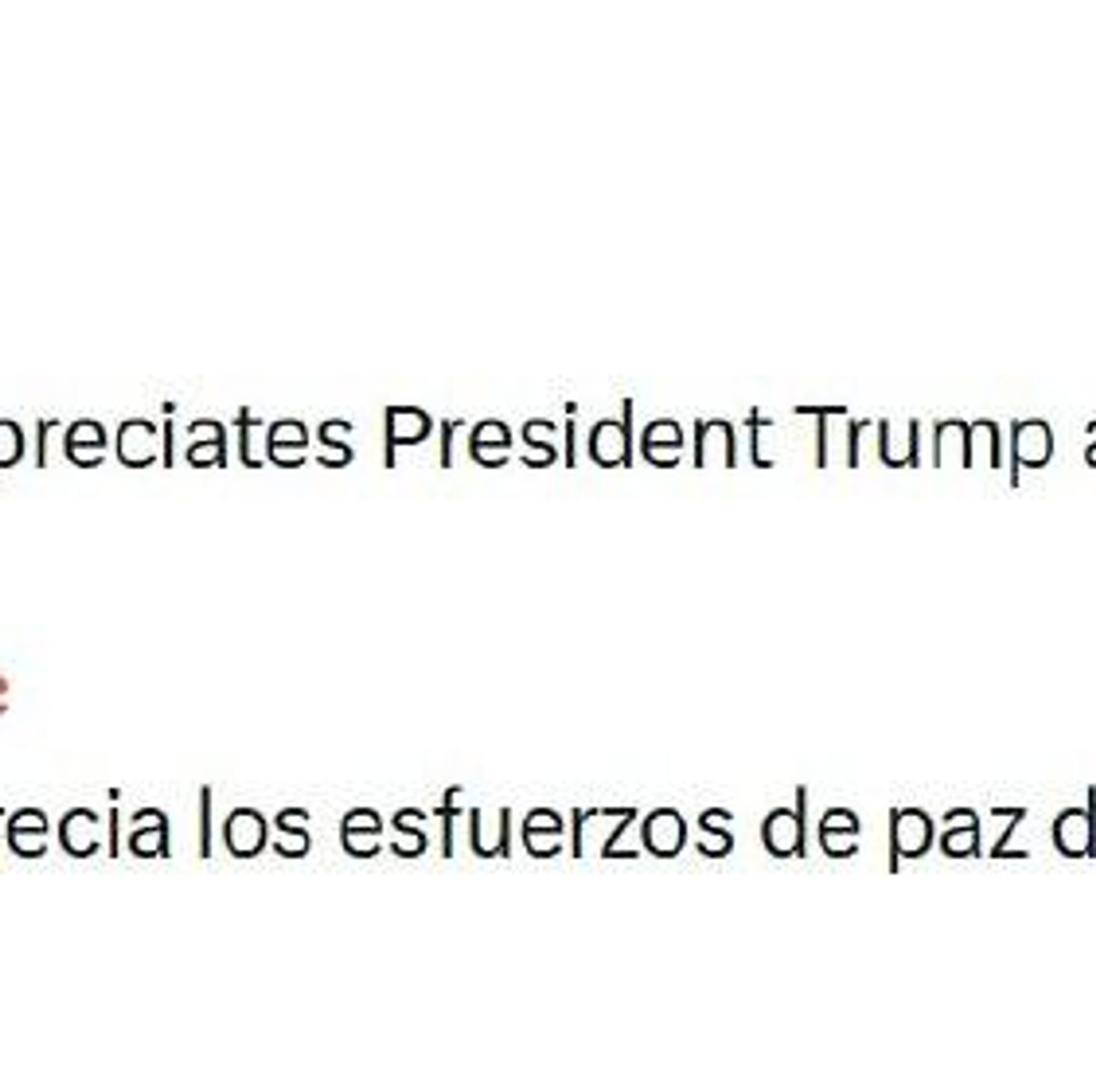"El mundo entero aprecia los esfuerzos de paz del presidente Trump y su equipo", escribió en la red social X.