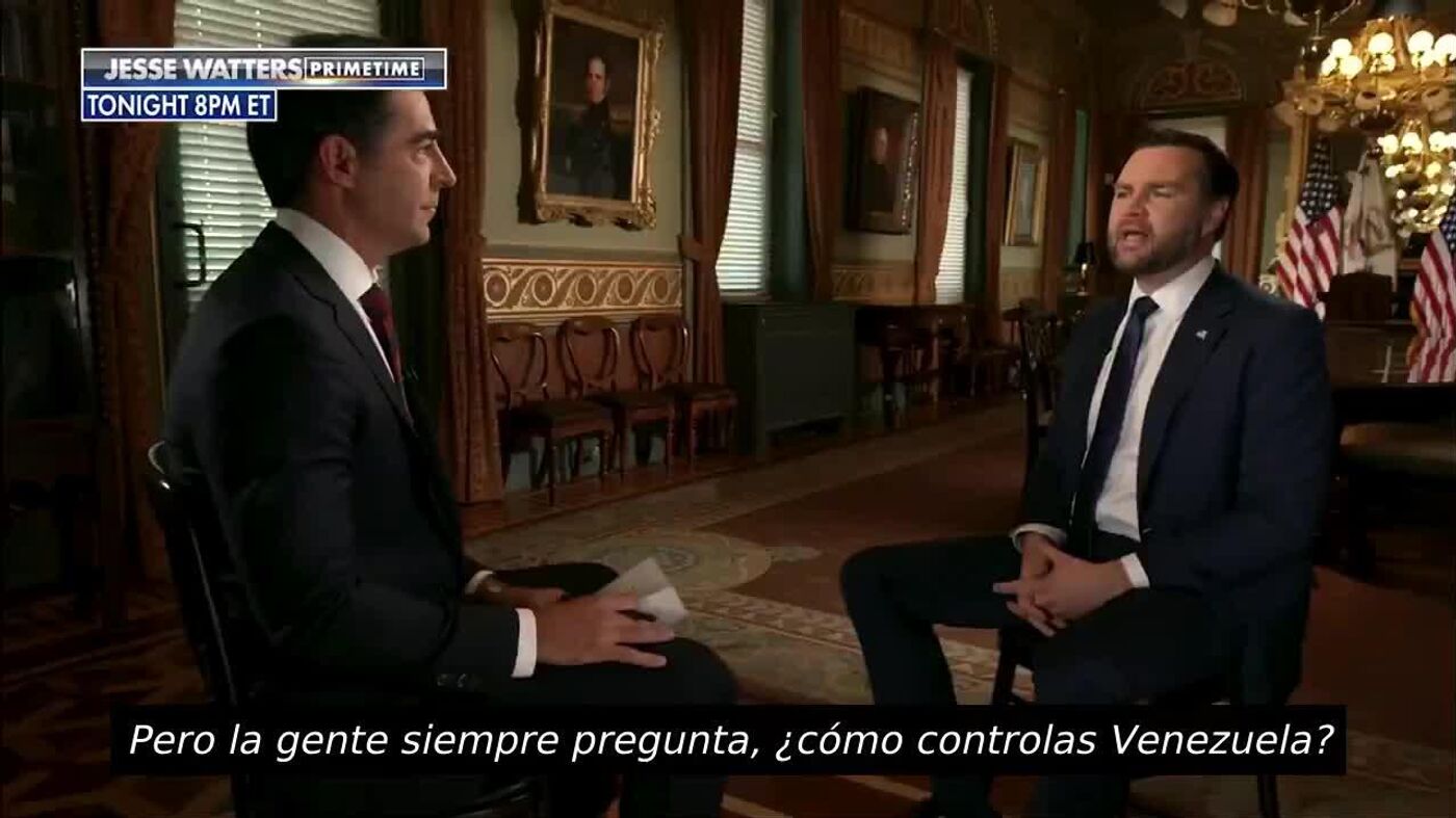 "Controlamos los recursos energéticos y le decimos al régimen: 'Tienen permiso para vender petróleo siempre que contribuya al interés nacional de Estados Unidos'", declaró el vicepresidente estadounidense J. D. Vance a Fox News.