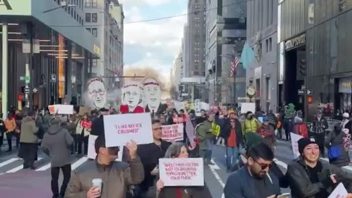 🪧 Protestan en Nueva York contra las políticas de la Casa Blanca