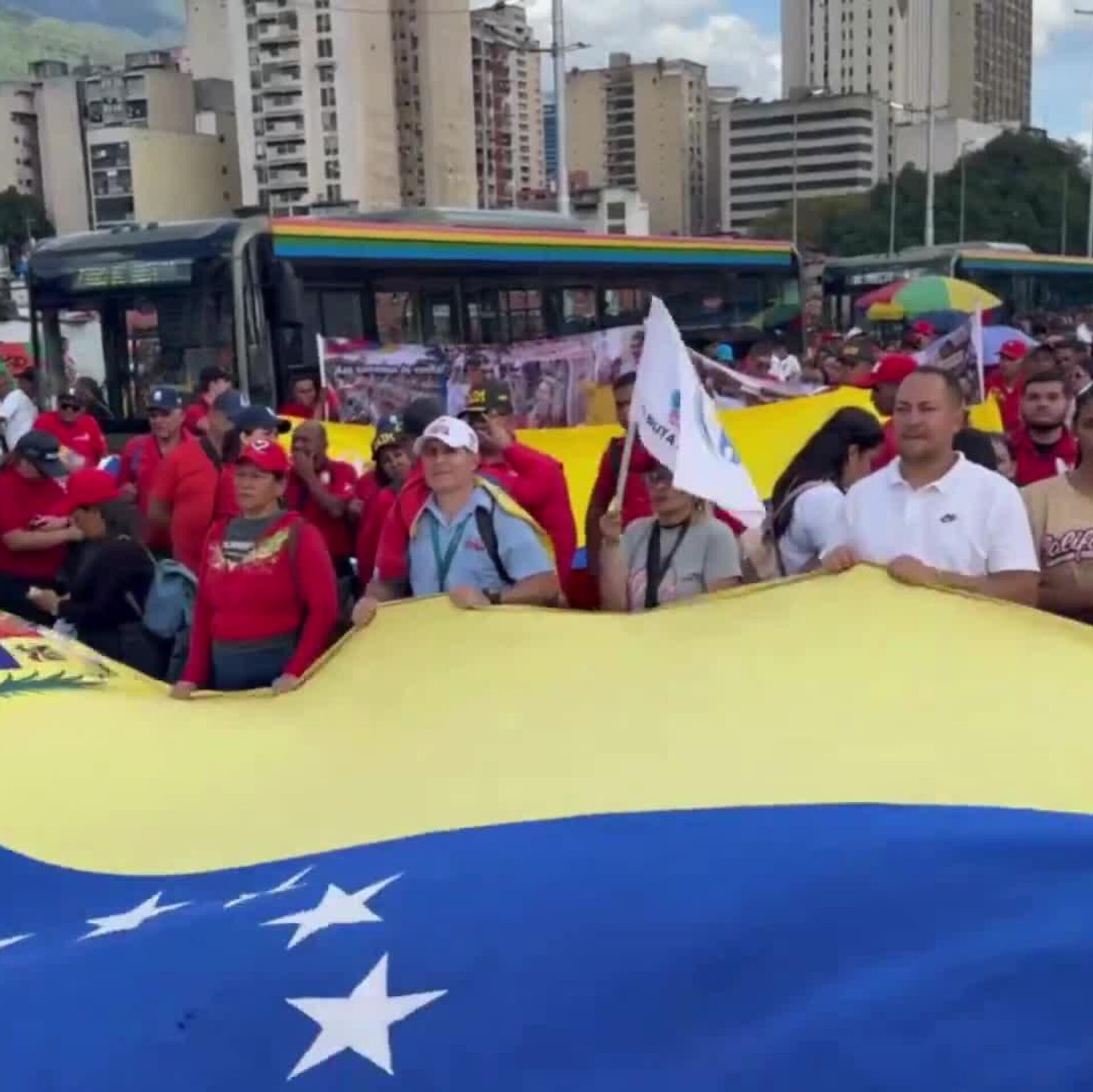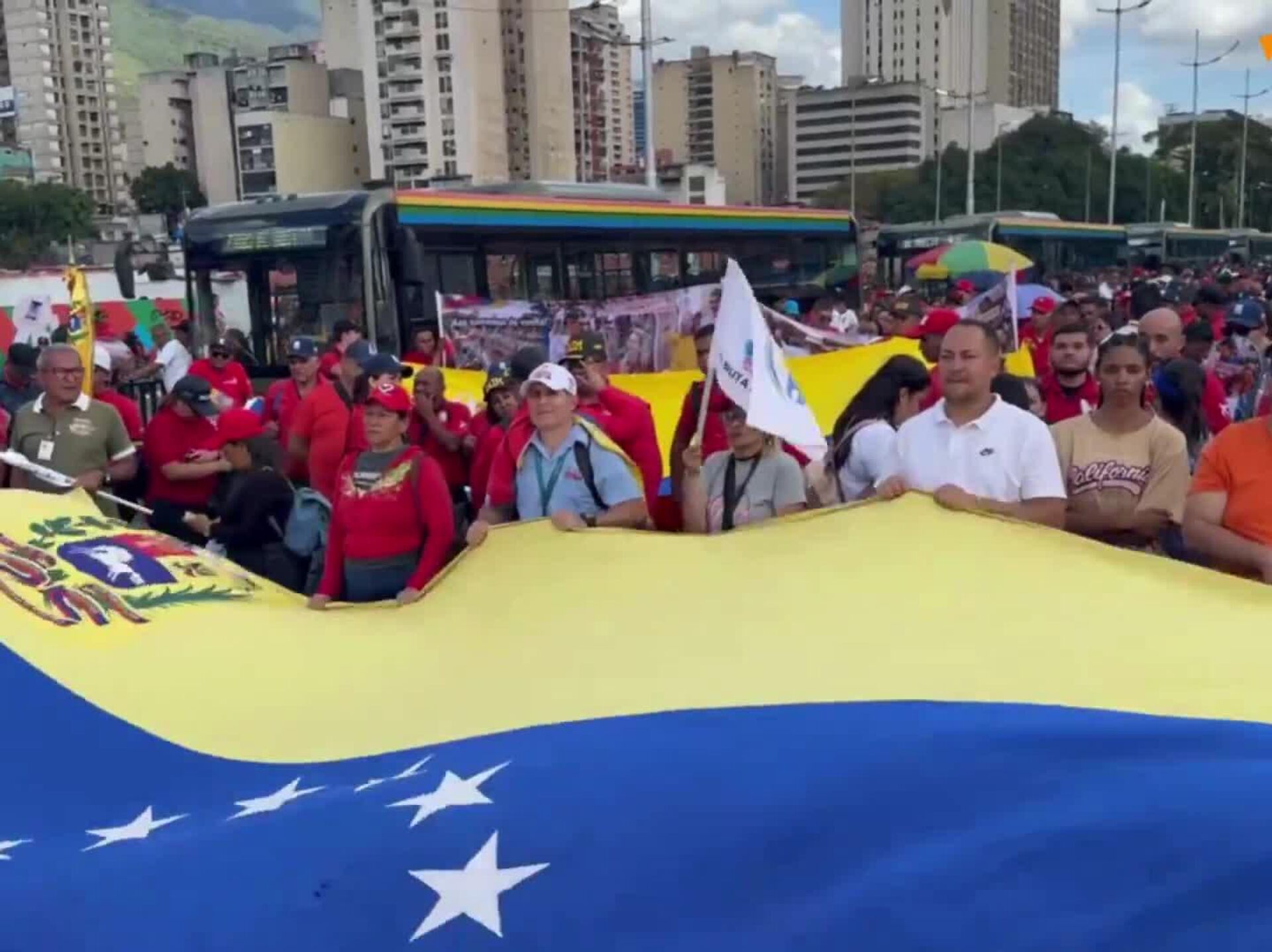Trabajadores de la industria venezolana del transporte se congregaron en Caracas para exigir la liberación del presidente del país, Nicolás Maduro, y su esposa Cilia Flores, quienes fueron secuestrados el pasado 3 de enero por las fuerzas de EEUU, en una intervención militar que ha puesto en jaque la estabilidad de América Latina como zona de paz.