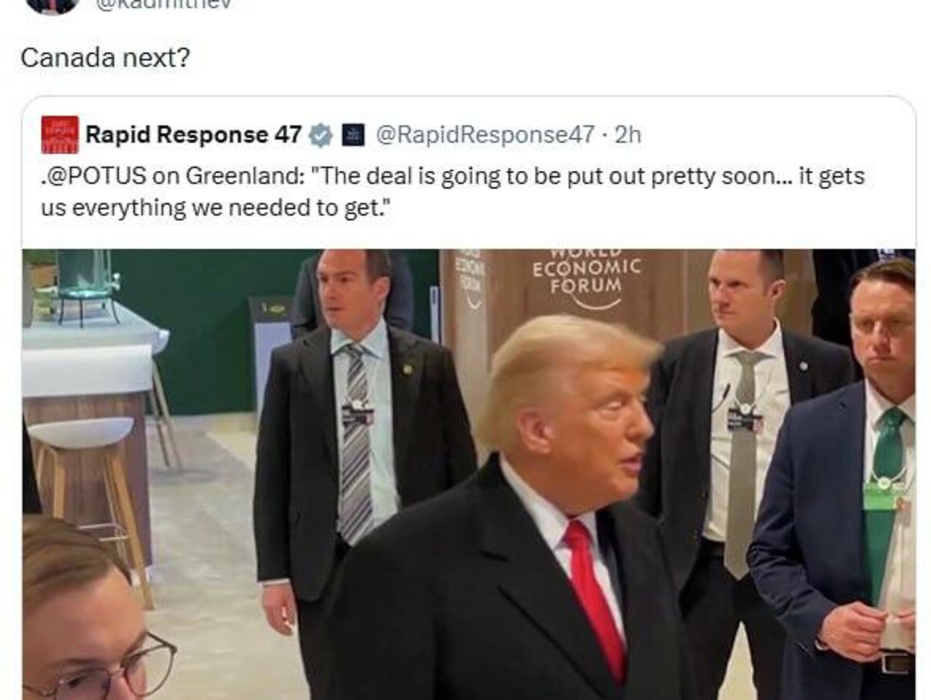 "¿El siguiente es Canadá?", cuestiona el enviado especial de Putin tras anunciarse "marco de acuerdo" sobre Groenlandia