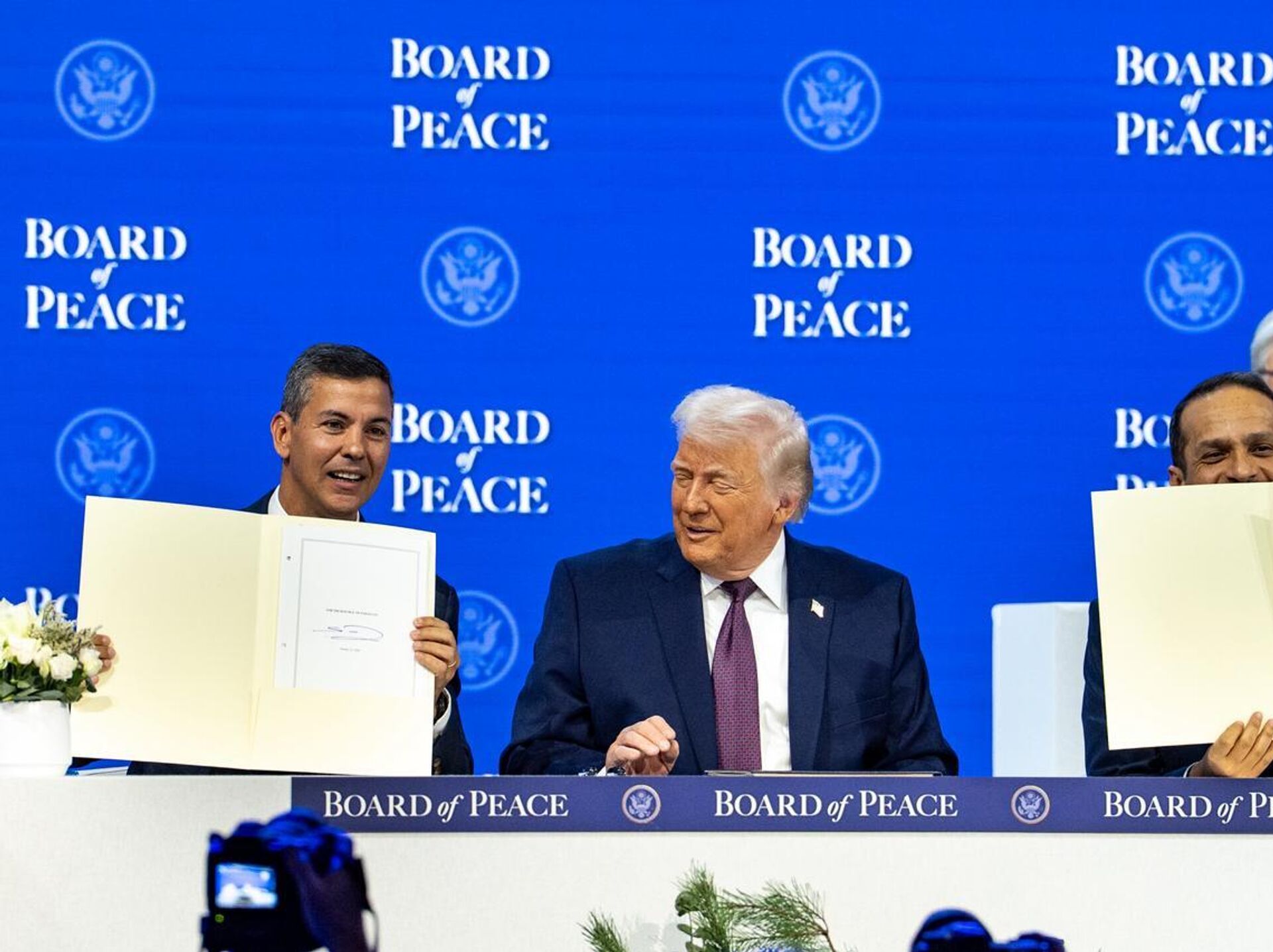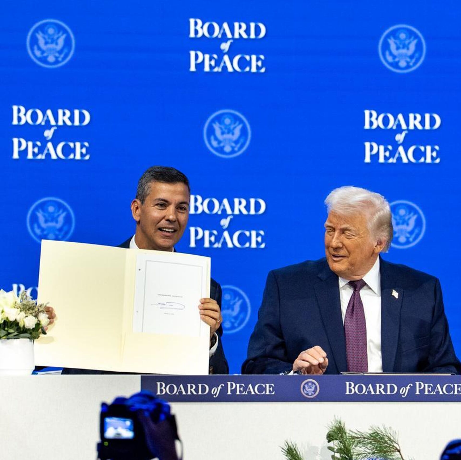 © Foto : X/ @SantiPenapEl presidente de Paraguay, Santiago Peña, junto a su par de EEUU, Donald Trump, durante el Consejo de Paz en enero de 2026