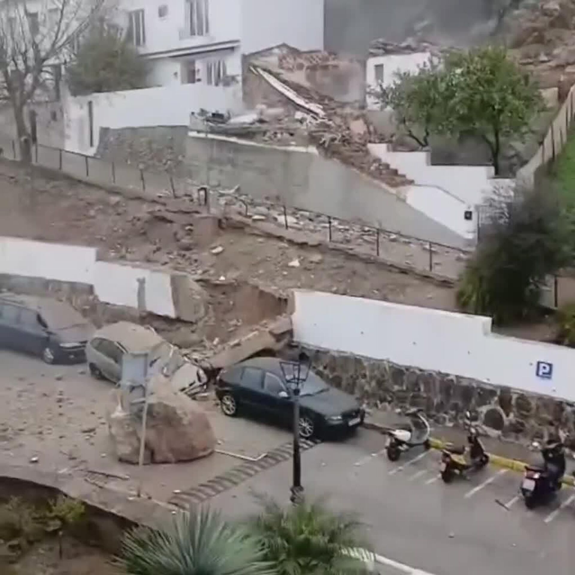 En uno de los barrios residenciales, piedras de gran tamaño se precipitaron desde la montaña, golpeando viviendas y aplastando vehículos estacionados cerca, según muestran los videos compartidos en redes sociales. Por el momento, los medios reportan solo una persona herida.