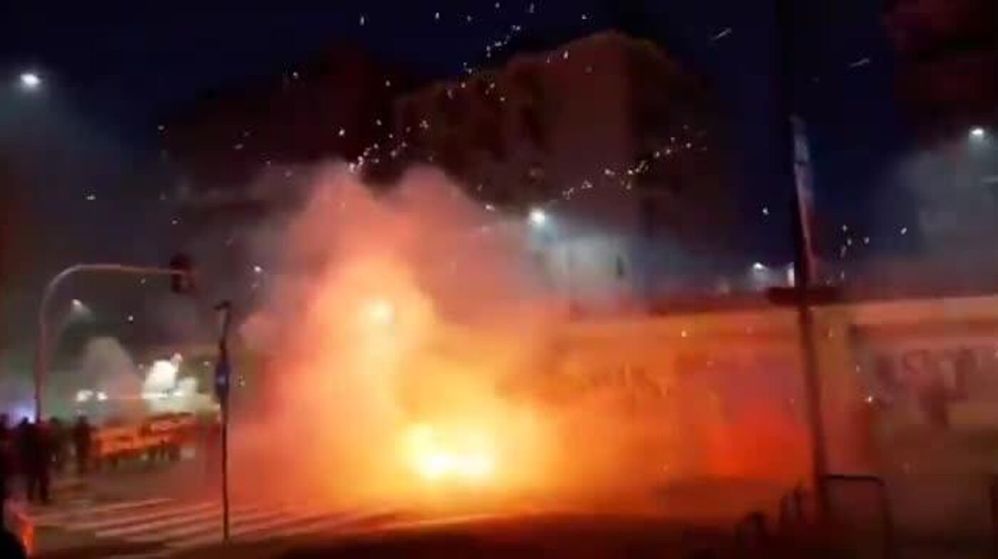 Los manifestantes comenzaron a lanzar piedras, bengalas y fuegos artificiales contra los agentes del orden, mientras que la Policía utilizó cañones de agua y gas lacrimógeno.