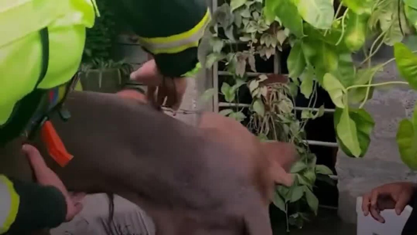 Equipos de emergencia colombianos rescatan a mascotas afectadas por las inundaciones en Córdoba