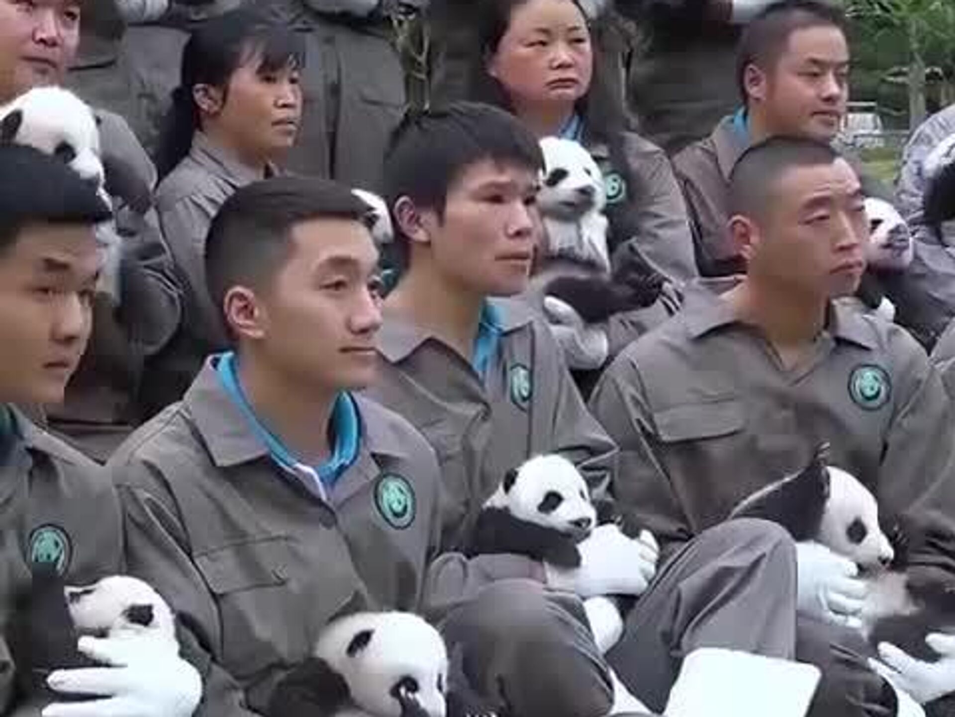 Los cachorros también participaron en una breve sesión fotográfica con sus cuidadores, que dedican hasta ocho horas diarias a su alimentación e higiene.