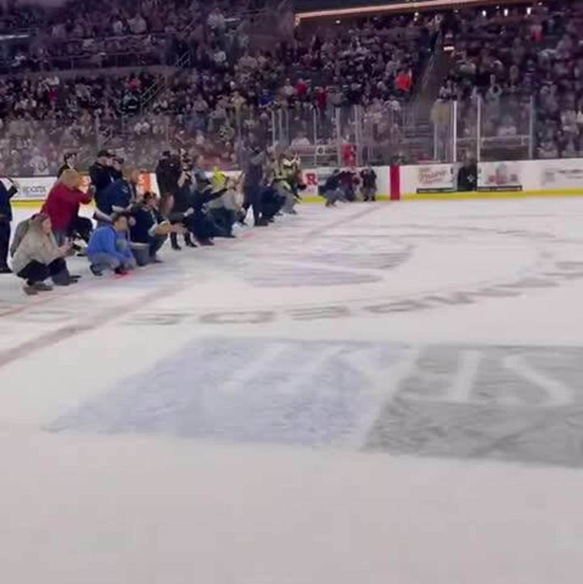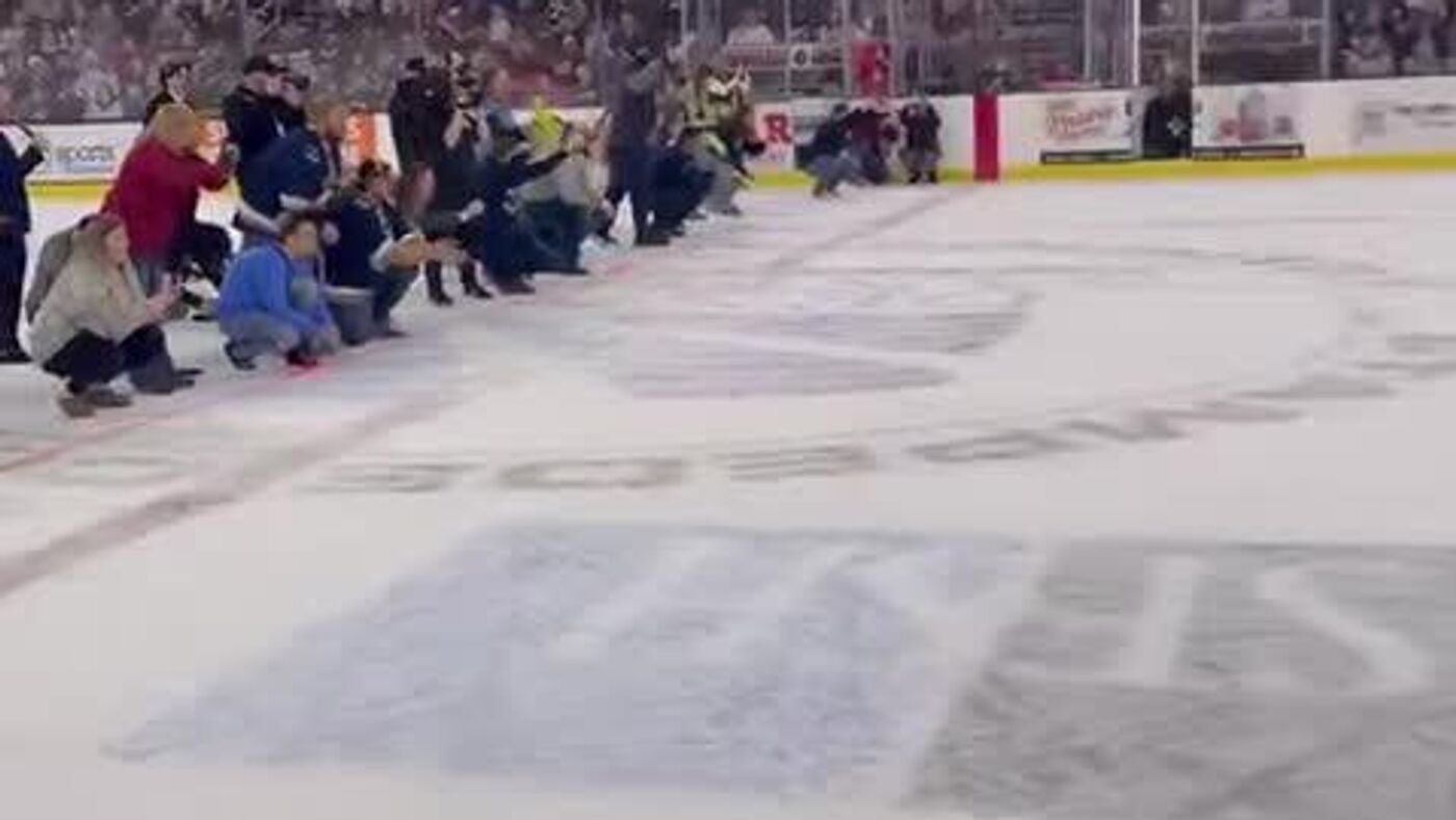 Una previa muy divertida: carrera de salchichas enternece antes del inicio de un partido de hockey
