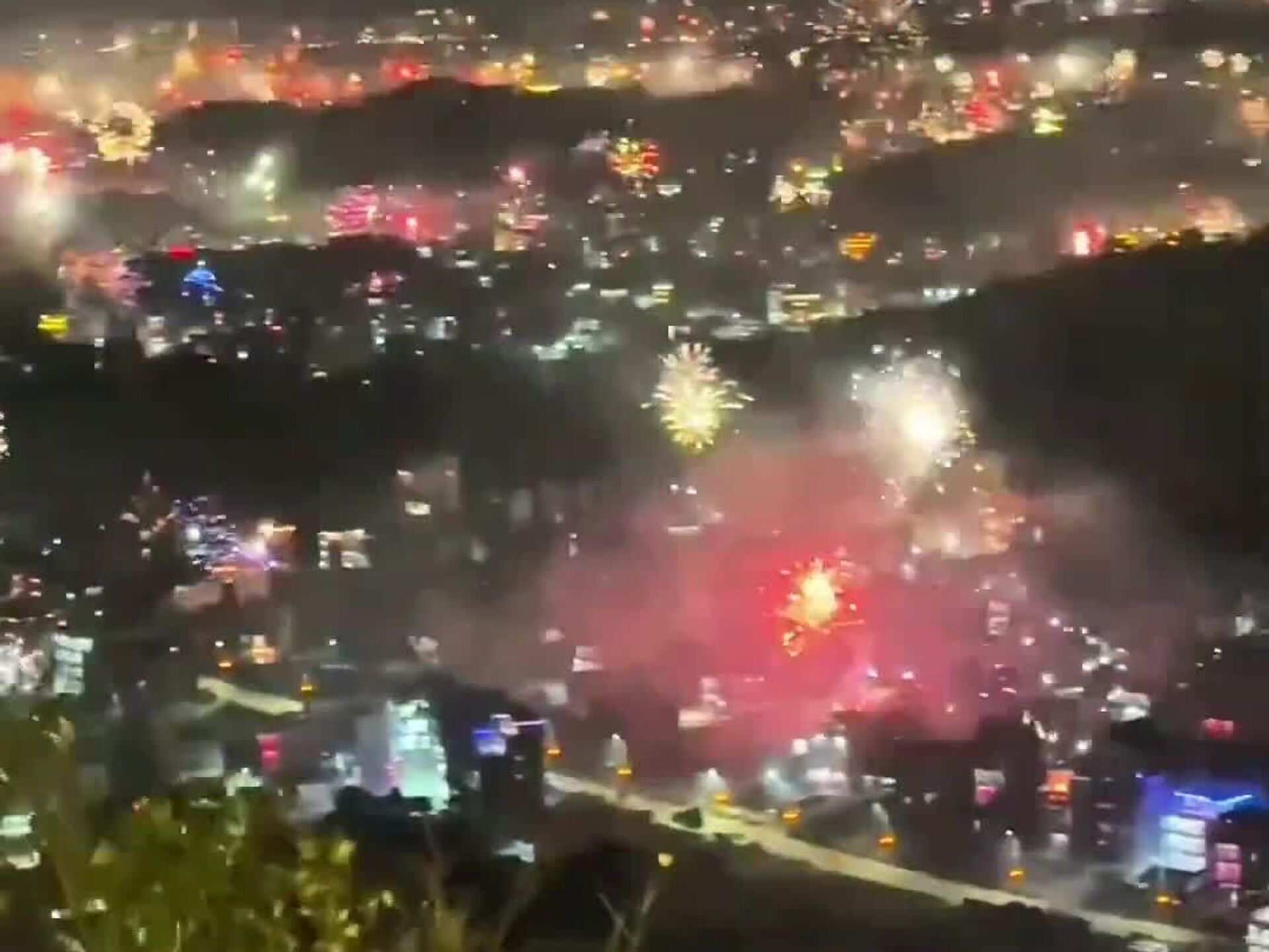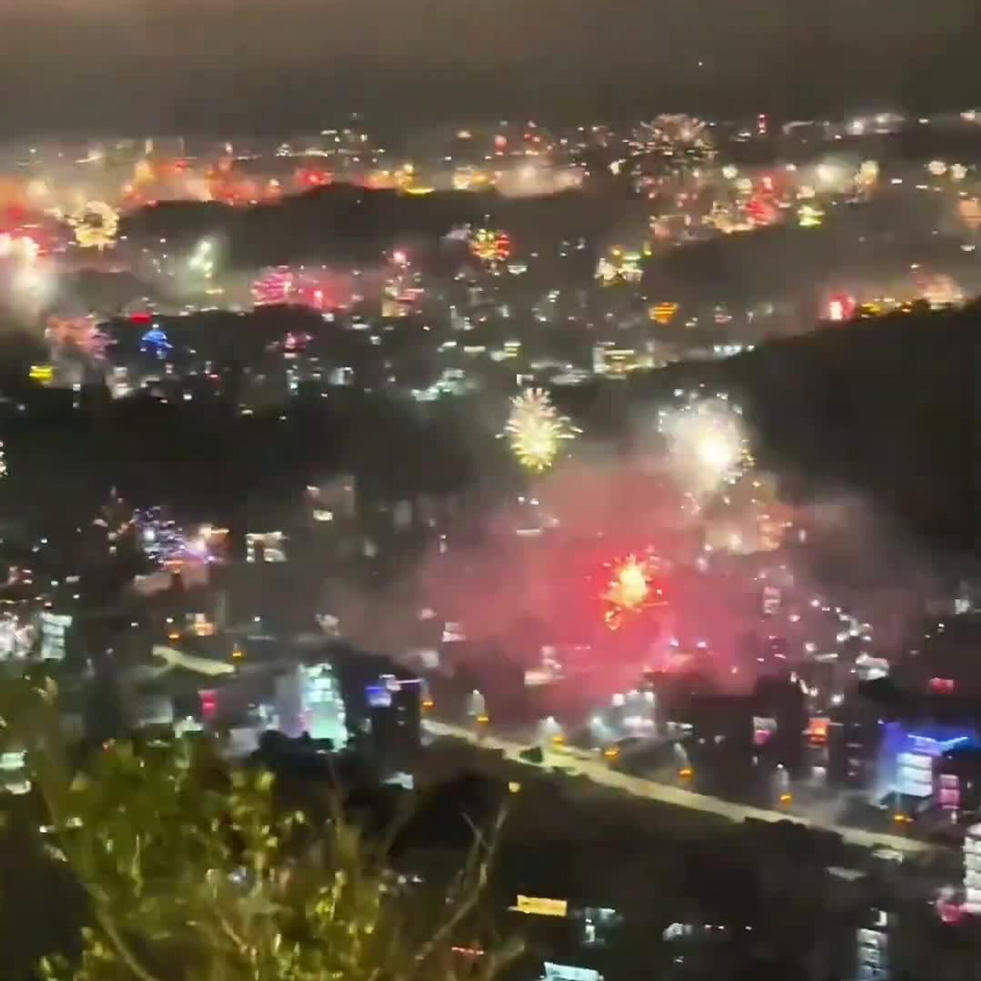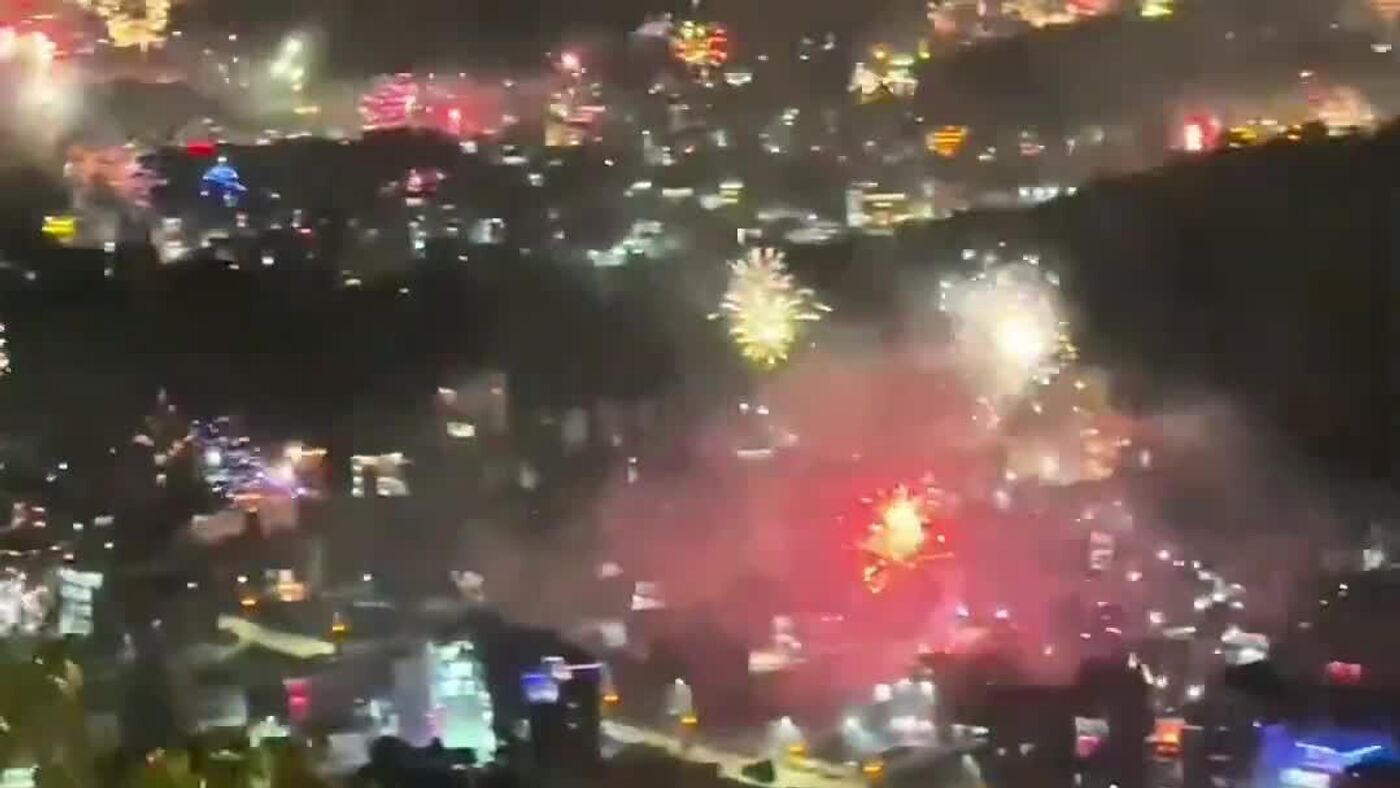 Una ciudad en China recibió el Año Nuevo con miles de luces en el cielo
