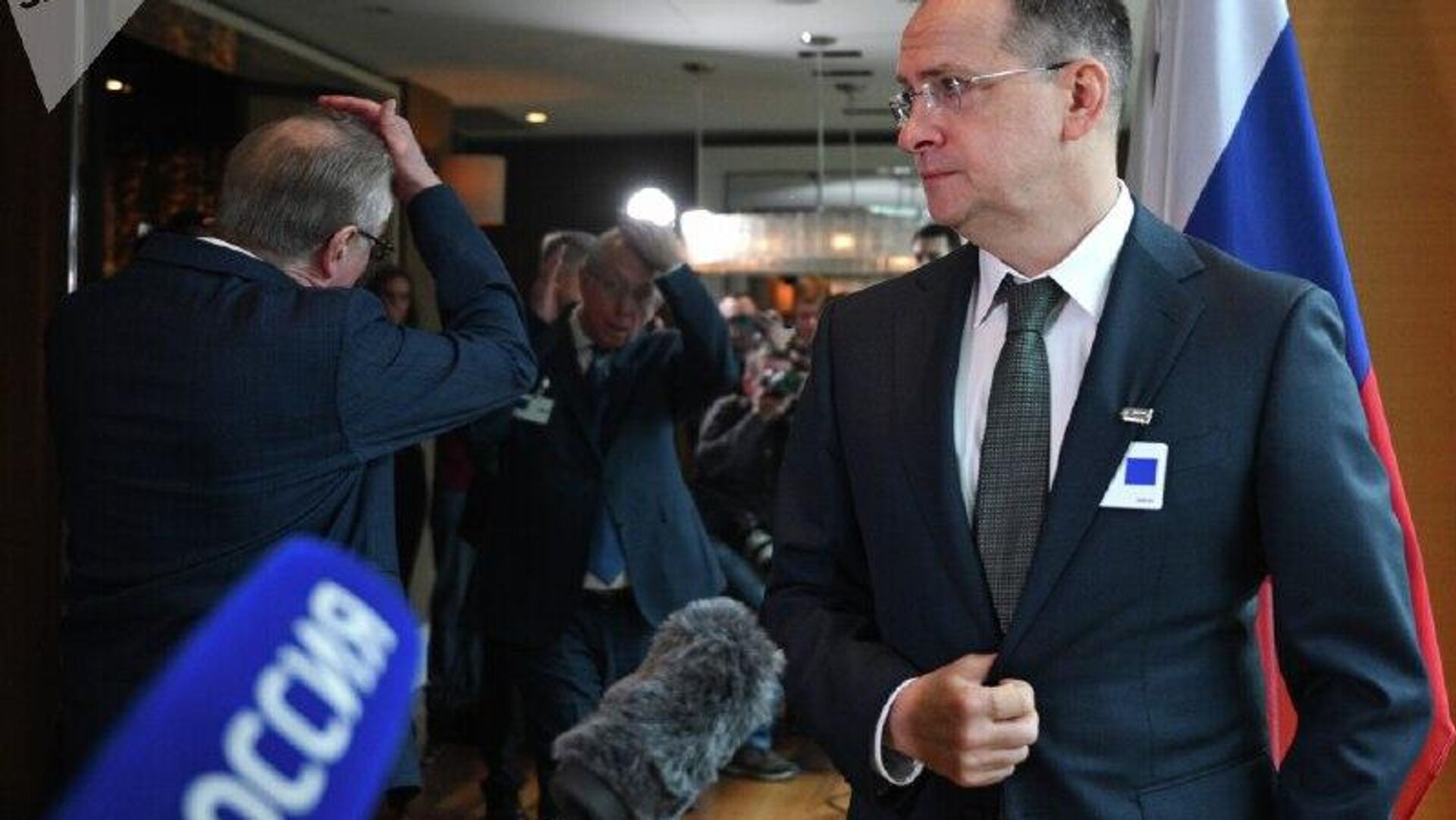 El asesor del presidente ruso, Vladímir Medinski, celebró un encuentro de dos horas en el lugar de la reunión trilateral en Ginebra antes de partir hacia el aeropuerto, según informó a Sputnik una fuente del grupo negociador.